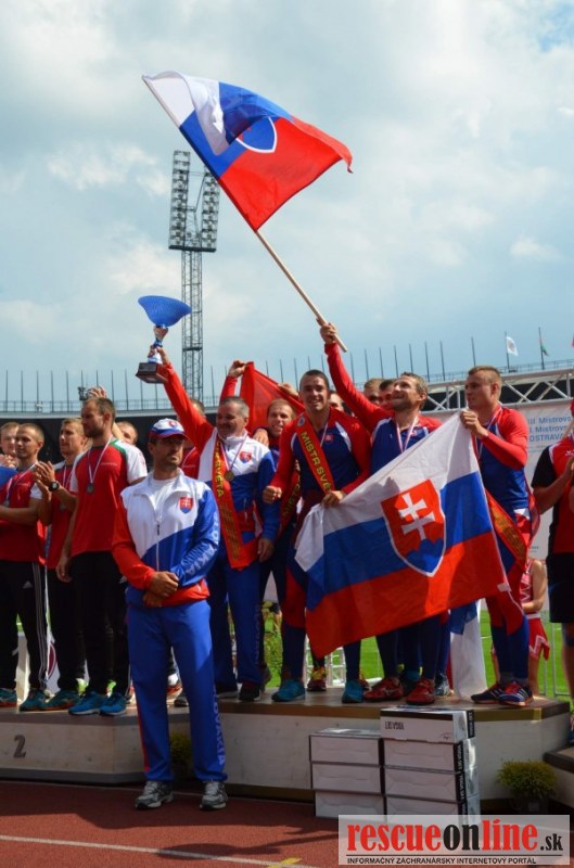 MVSR /MM/ V sobotu sa na Majstrovstvách sveta v hasičskom športe v Ostrave uskutočnilo slávnostné vyhodnotenie, z ktorého si slovenská reprezentácia odniesla hneď niekoľko medailí. Zlatú medailu v požiarnom útoku s časom 25,52 s. získali Muži a dokázali tak zvíťaziť v konkurencii 14 družstiev. V požiarnom útoku bodovali aj Dorastenky, ktoré s časom 20,87 s. porazili 5 súperov a získali zlato. Na treťom mieste v rovnomennej disciplíne v kategórii Ženy skončili reprezentantky Slovenska s časom 27,61 s.