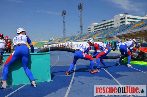 MVSR |MM| Počas včerajšieho dňa na X. ročníku Majstrovstiev sveta v hasičskom športe v meste Alma-Ata, Kazachstan, prebiehala posledná disciplína - požiarny útok. Aj napriek minuloročnému prvenstvu našich reprezentantov sa im tento rok prvé miesto obhájiť nepodarilo a skončili na peknom 4. mieste. Spomedzi 15-ich družstiev z celého sveta sa na Majstrovstvách sveta v hasičskom športe Slovensko umiestnilo na 8. mieste.
