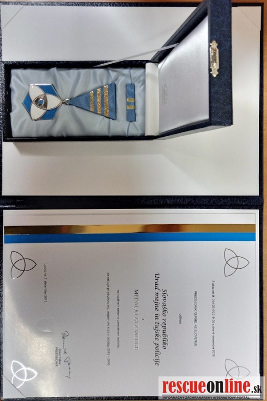 Z rúk prezidenta Slovinskej republiky Boruta Pahora prevzali Medailu za zásluhy udelenú Slovenskej republike - Úradu hraničnej a cudzineckej polície Prezídia Policajného zboru za prínos pri zvládnutí migračnej krízy v Slovinsku na jeseň 2015 a na jar 2016. Prezident Slovinskej republiky vyjadril uznanie a poďakovanie všetkým organizáciám a jednotlivcom, ktorí prispeli nielen k riadeniu migračných tokov a k ochrane verejného poriadku, ale aj k zabezpečeniu ľudských podmienok pre migrantov.