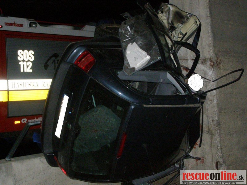 KR HaZZ Trnava | IT| Na operačné stredisko OR HaZZ Galanta bola v pondelok 7. novembra 2011 o 19:43 hod. nahlásená z IZS Trnava dopravná nehoda na 24 km rýchlostnej komunikácie R1 smer Nitra. Na miesto udalosti bola vyslaná jednotka z HS Sereď, ątyria prísluąníci HaZZ s technikou MB Vario. Po príjazde jednotky HaZZ sa na mieste dopravnej nehody nachádzali prísluąníci polície. Vozidlo sa nachádzalo zakliesnené medzi betónovým zvodidlom a pilierom mosta. V motorovom vozidle sa nachádzala osoba muľského pohlavia, ktorá nejavila známky ľivota. Po príjazde ZZS bola lekárom konątatovaná smr» tejto osoby. Po zdokumentovaní nehody a po príjazde od»ahovej sluľby bolo havarované vozidlo premiestnené na vozovku. Počas vy»ahovania vozidla bola premávka na R1 vedená v jednom jazdnom pruhu. Po sprístupnení vozidla bola postihnutá osoba prísluąníkmi HaZZ vyslobodená pomocou hydraulického zariadenia a následne bola naloľená do vozidla pohrebnej sluľby. Po ukončení zásahu o 22:35 hod. sa jednotka HaZZ vrátila na základňu.