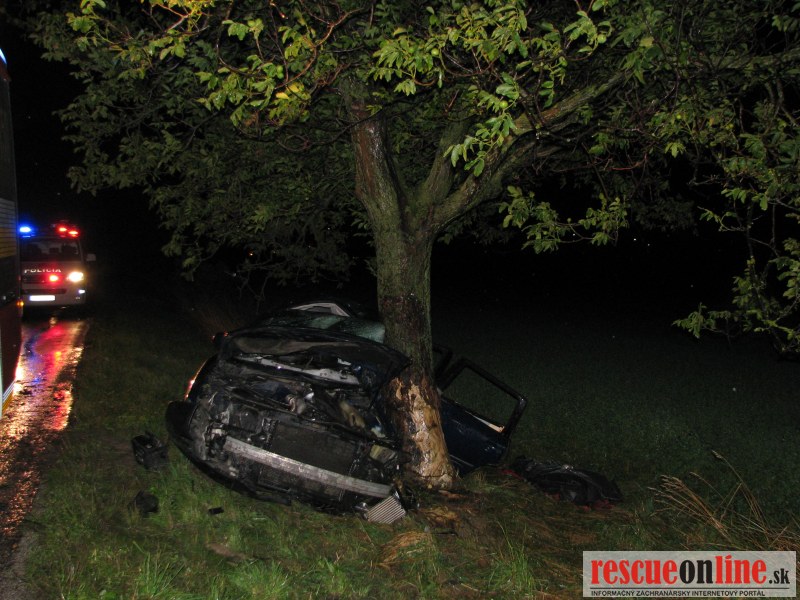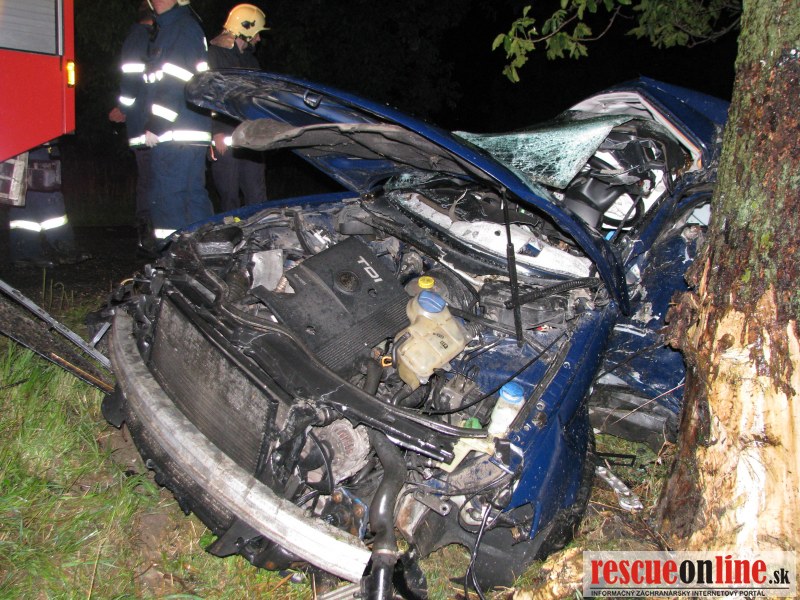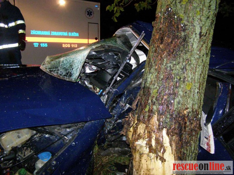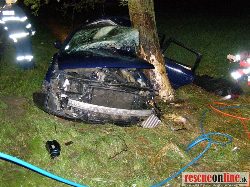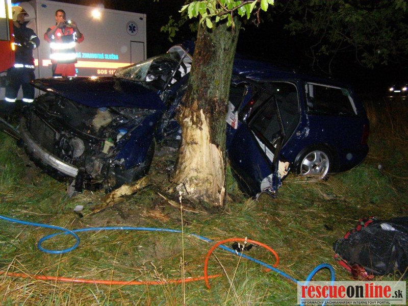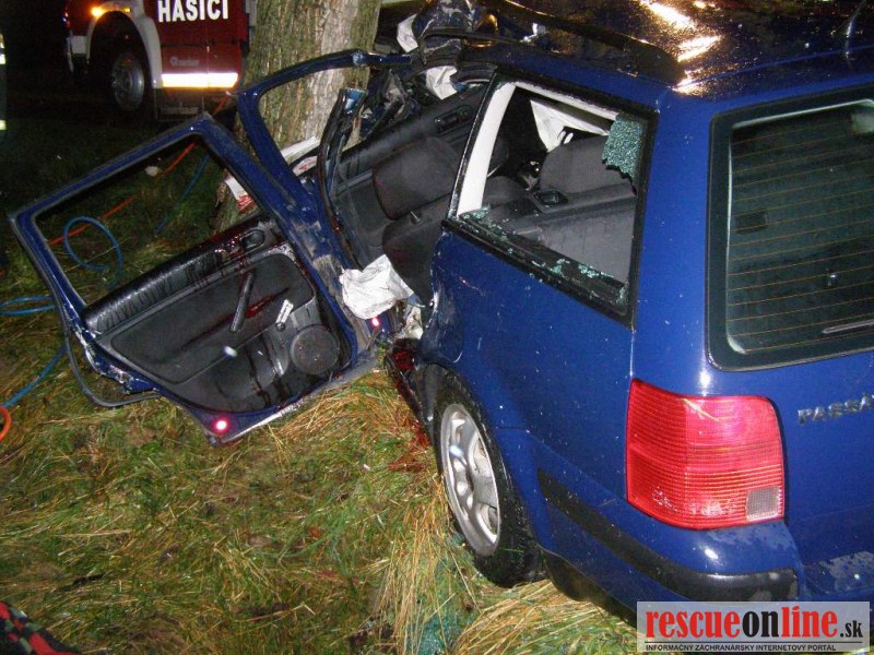 KR HaZZ Trnava |MM| Vo štvrtok 21. júla 2011 o 21:06 hod. bola na operačné stredisko OR HaZZ v Piešťanoch bola nahlásená dopravná nehoda osobného motorového vozidla s jednou zranenou zakliesnenou osobou za Vrbovým smerom na Prašník. Na miesto ohlásenia boli vyslaní štyria príslušníci HaZZ s technikou MB Atego. Jednotka HaZZ sa na miesto nehody dostavila súčasne z vozidlom ZZS. Pred príjazdom jednotky HaZZ bola na mieste dopravnej nehody prítomna hliadka OO PZ Vrbové. Po príjazde na miesto udalosti bolo prieskumom zistené, že motorové vozidlo VW Passat narazilo do stromu a vodič bol vo vozidle zakliesnený. Jednotka HaZZ zakliesnenú osobu z vozidla vyslobodila za pomoci vyslobodzovacieho zariadenia. Osoba bola odovzdaná posádke ZZS, ktorej lekár u 28 ročného vodiča konštatoval exitus. Jednotka HaZZ na havarovanom vozidle vykonala protipožiarne opatrenia a nezistila únik prevádzkových kvapalín. Na miesto nehody sa dostavila dopravná polícia. Po zdokumentovaní miesta udalosti sa jednotka HaZZ o 22:18 hod. vrátila na základňu.