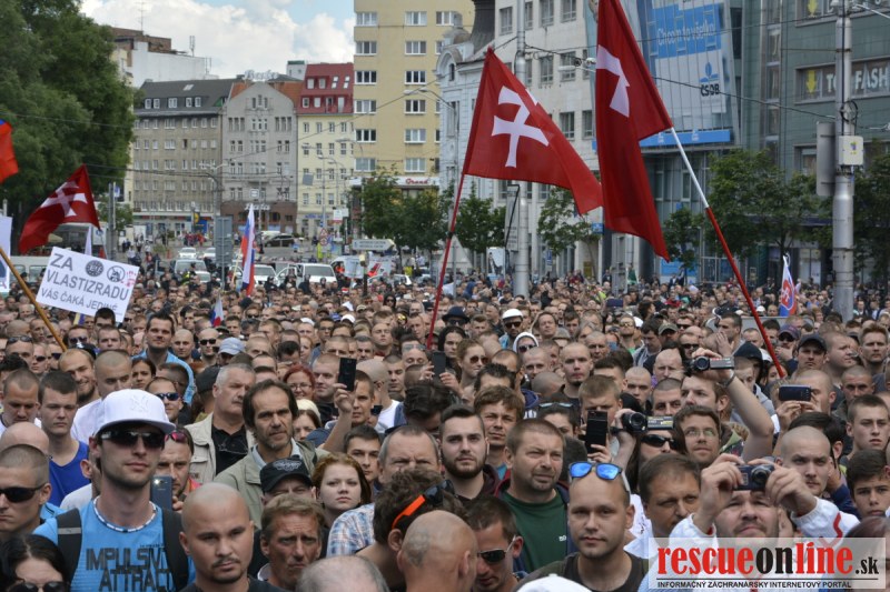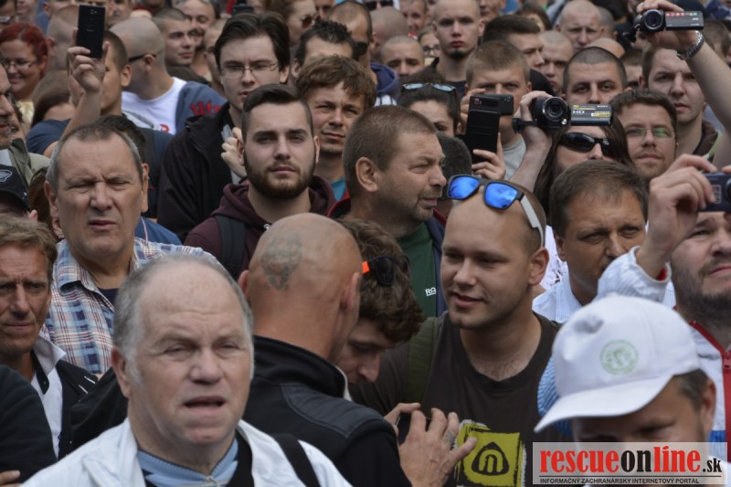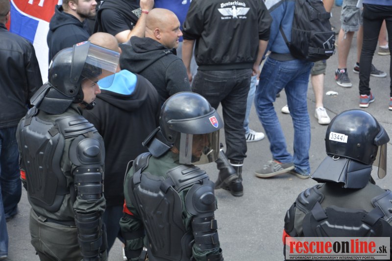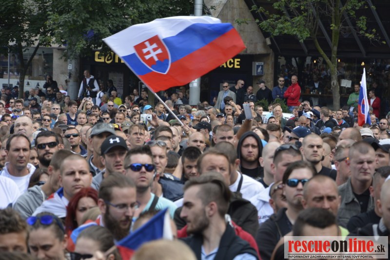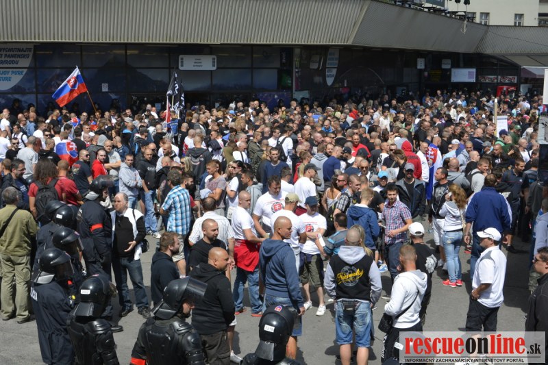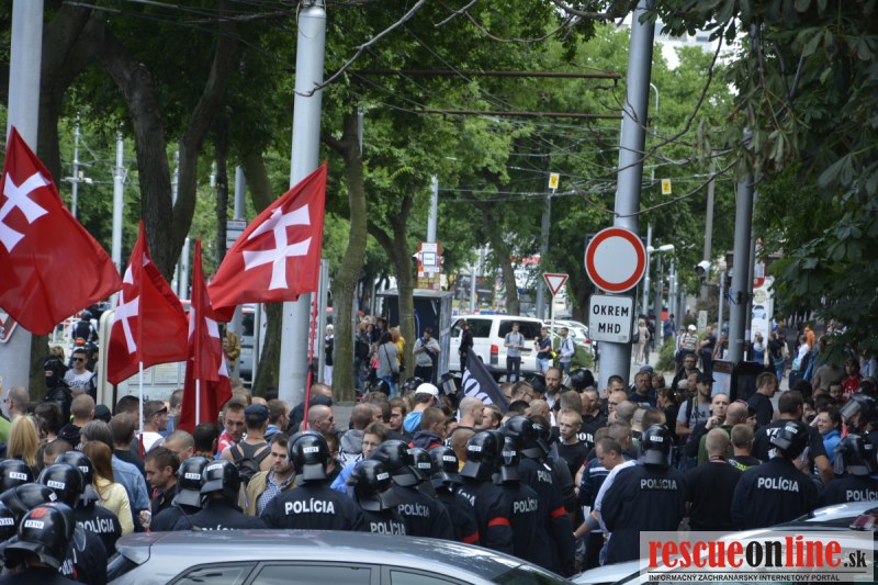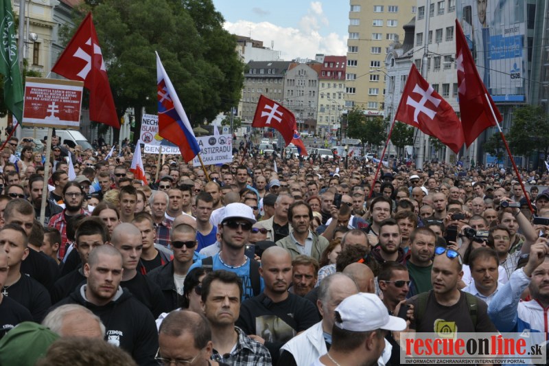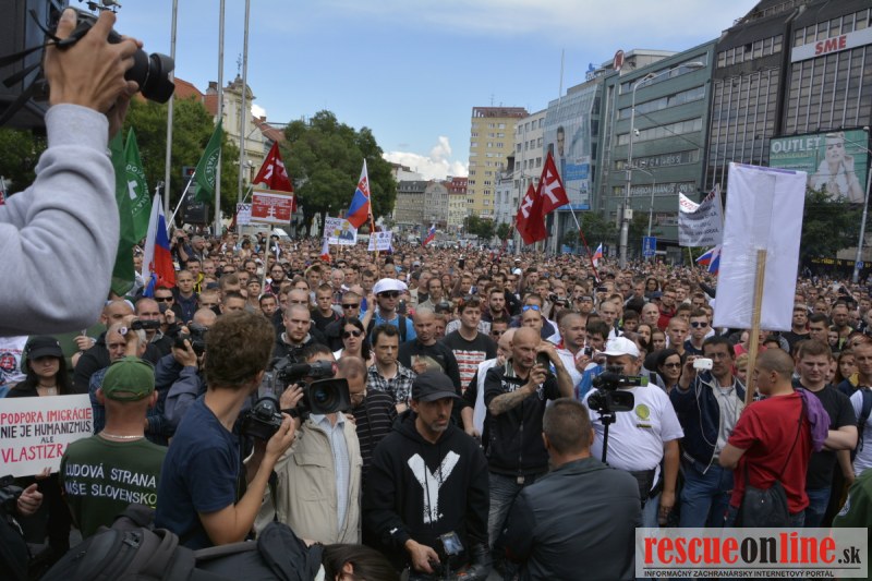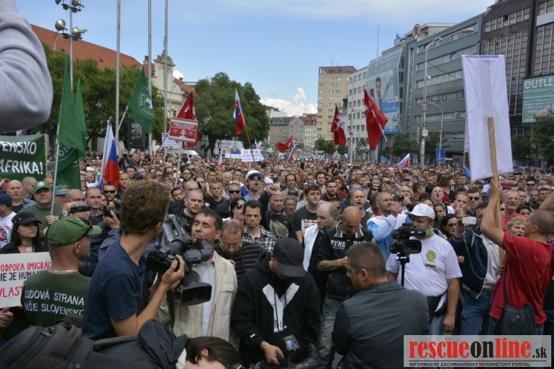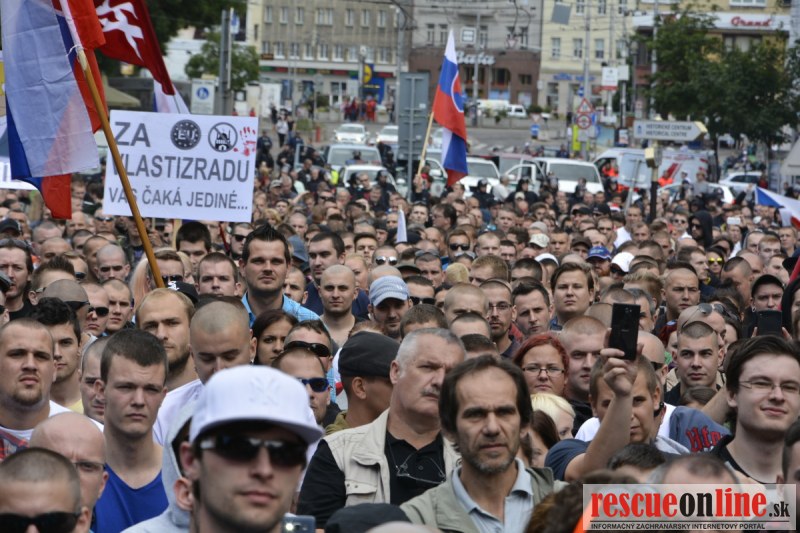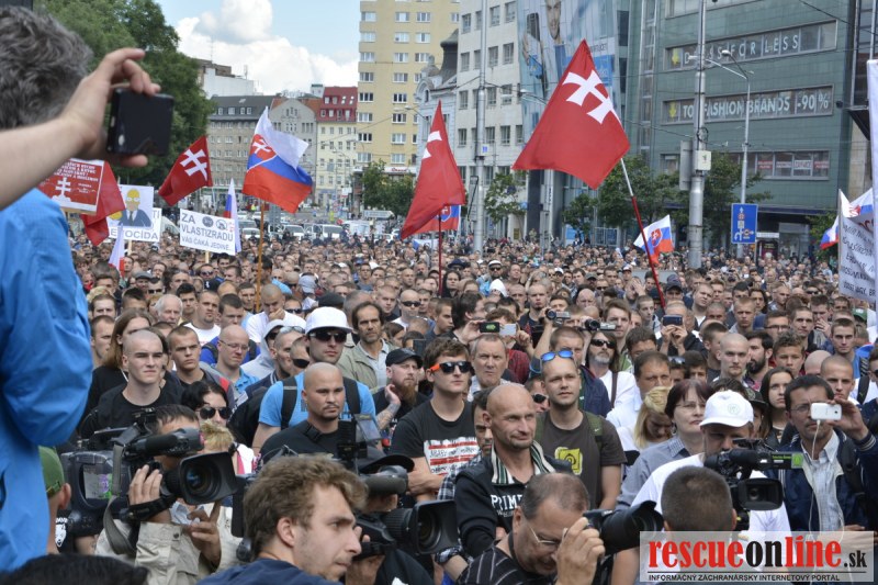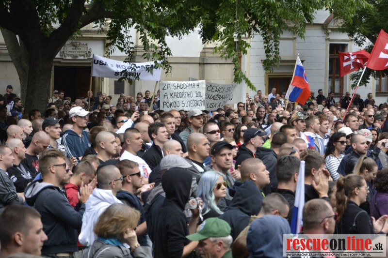 Bratislava | Ešte stále na námestí SNP prebieha občiansky protest izoskupenia Alternatívna cesta pod názvom STOP ISLAMIZÁCII EURÓPY, na ktorý prišli tisíce občanov krajiny. Zraz účastníkov protestu bol o 15.00 hodine na Hlavnej stanici a za doprovodu stoviek policajtov sa protestujúci presunuli na námestei SNP. Prísne bezpečnostné opatrenia sú znateľné v celom centre Bratislavy. Policajné autá so zásahovými jednotkami sa postupne presúvajú tam, kde sú očakávané nepokoje medzi účastníkmi protestu.