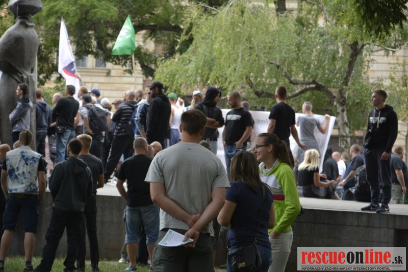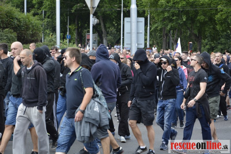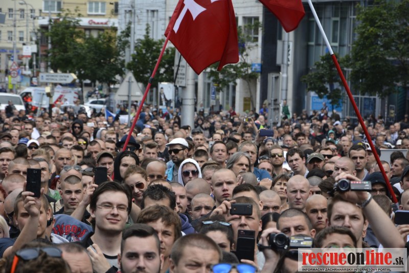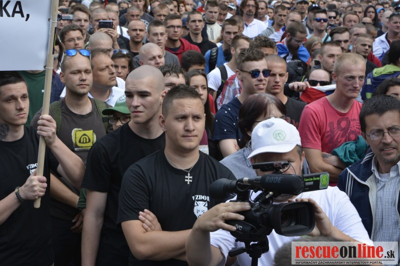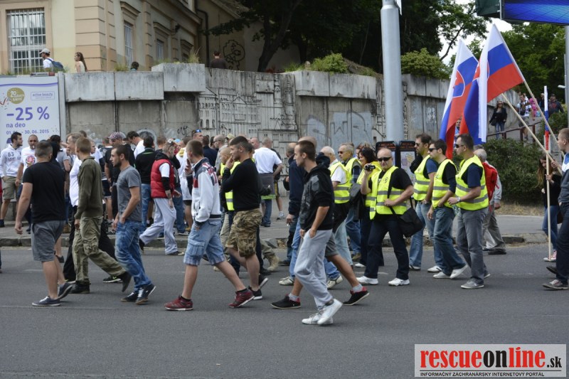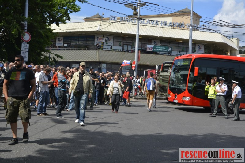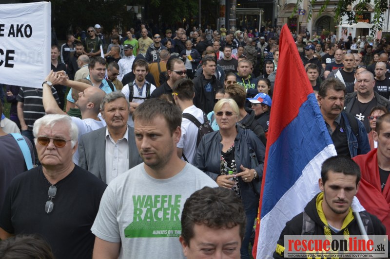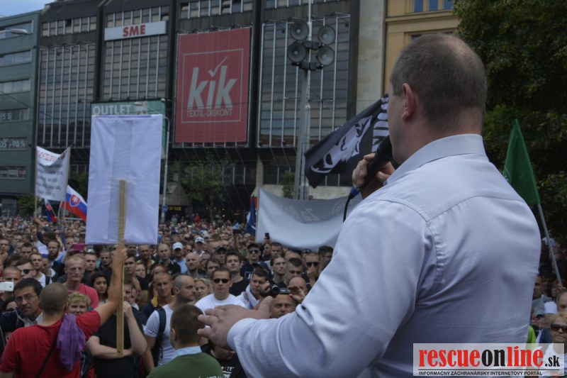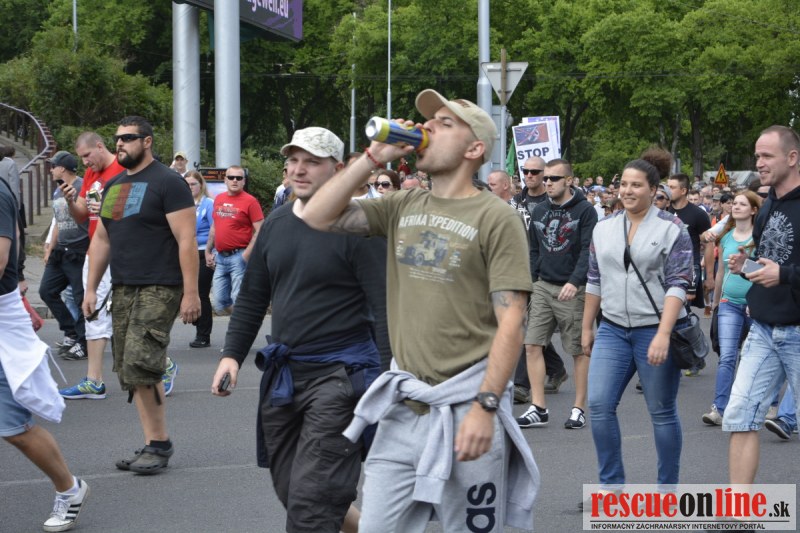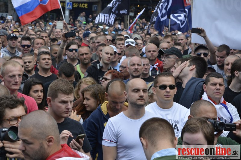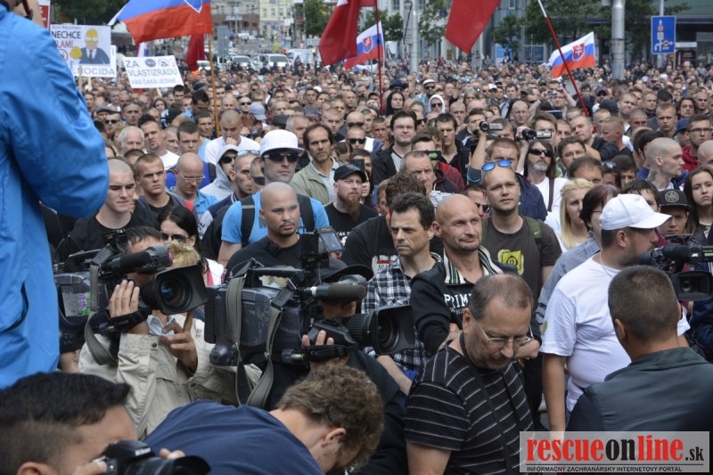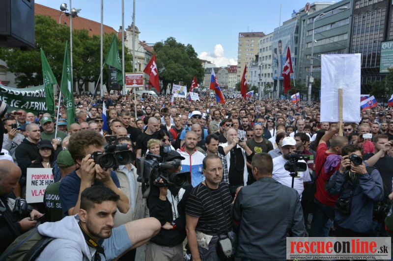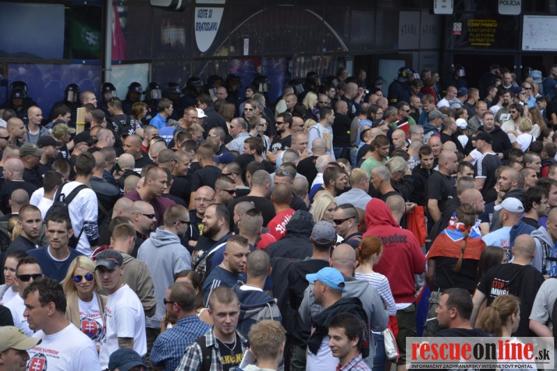 Bratislava | Ešte stále na námestí SNP prebieha občiansky protest izoskupenia Alternatívna cesta pod názvom STOP ISLAMIZÁCII EURÓPY, na ktorý prišli tisíce občanov krajiny. Zraz účastníkov protestu bol o 15.00 hodine na Hlavnej stanici a za doprovodu stoviek policajtov sa protestujúci presunuli na námestei SNP. Prísne bezpečnostné opatrenia sú znateľné v celom centre Bratislavy. Policajné autá so zásahovými jednotkami sa postupne presúvajú tam, kde sú očakávané nepokoje medzi účastníkmi protestu.