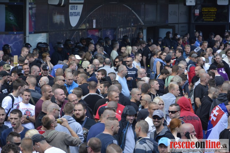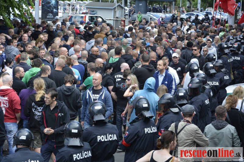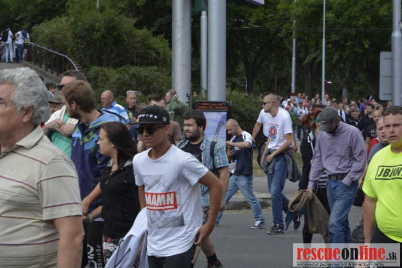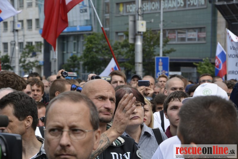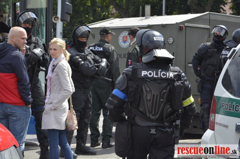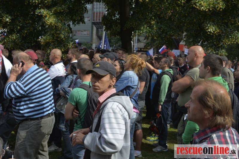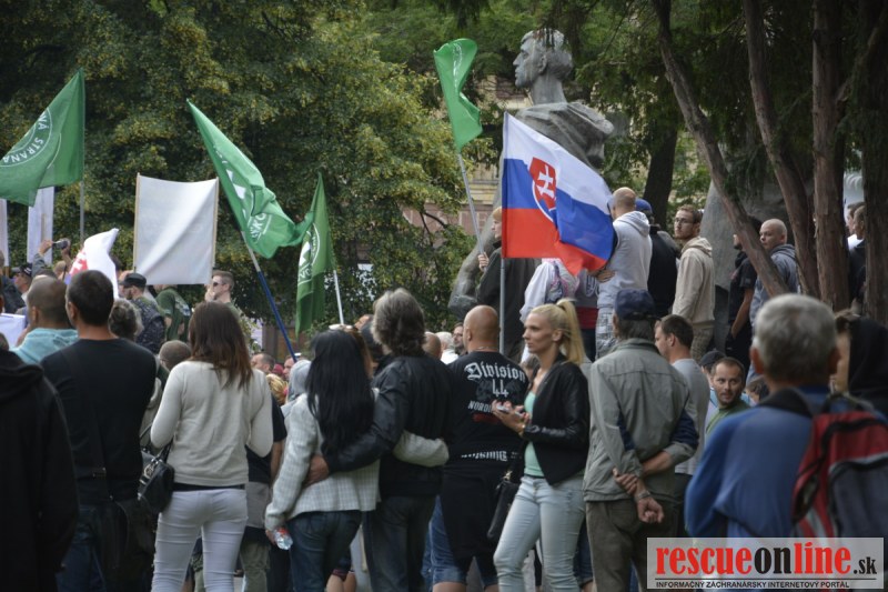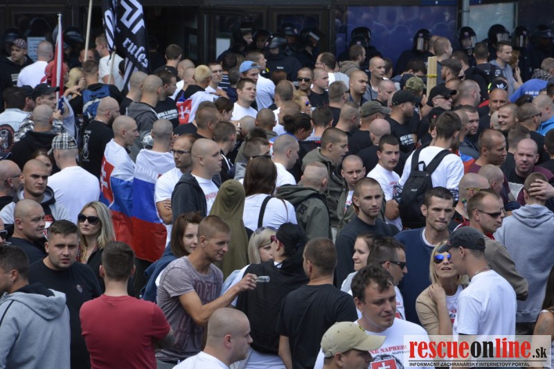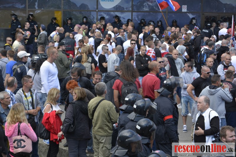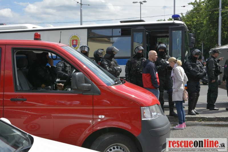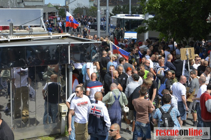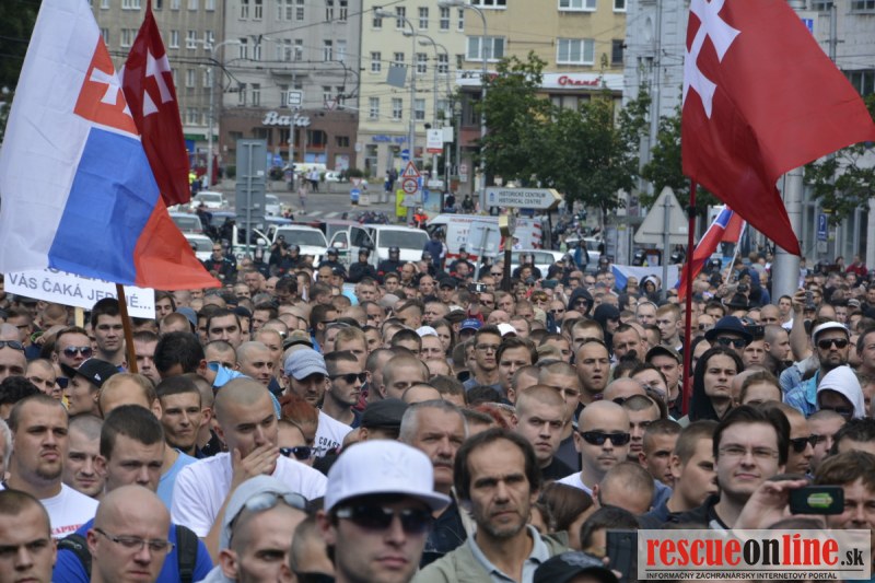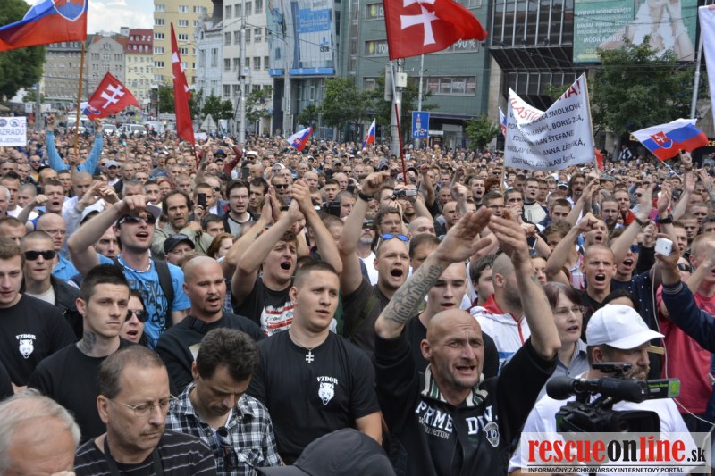 Bratislava | Ešte stále na námestí SNP prebieha občiansky protest izoskupenia Alternatívna cesta pod názvom STOP ISLAMIZÁCII EURÓPY, na ktorý prišli tisíce občanov krajiny. Zraz účastníkov protestu bol o 15.00 hodine na Hlavnej stanici a za doprovodu stoviek policajtov sa protestujúci presunuli na námestei SNP. Prísne bezpečnostné opatrenia sú znateľné v celom centre Bratislavy. Policajné autá so zásahovými jednotkami sa postupne presúvajú tam, kde sú očakávané nepokoje medzi účastníkmi protestu.