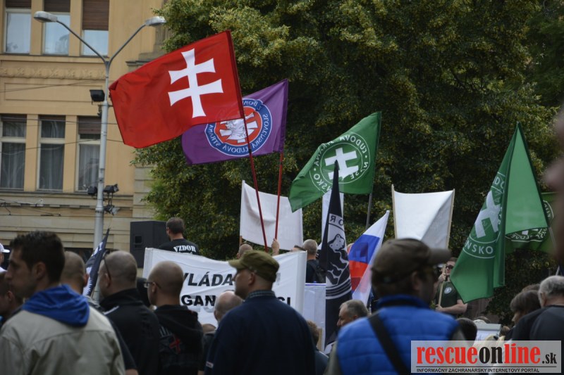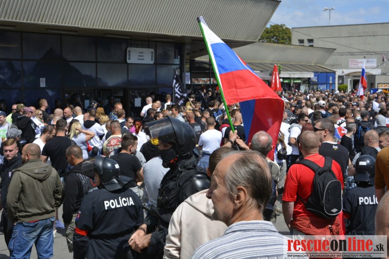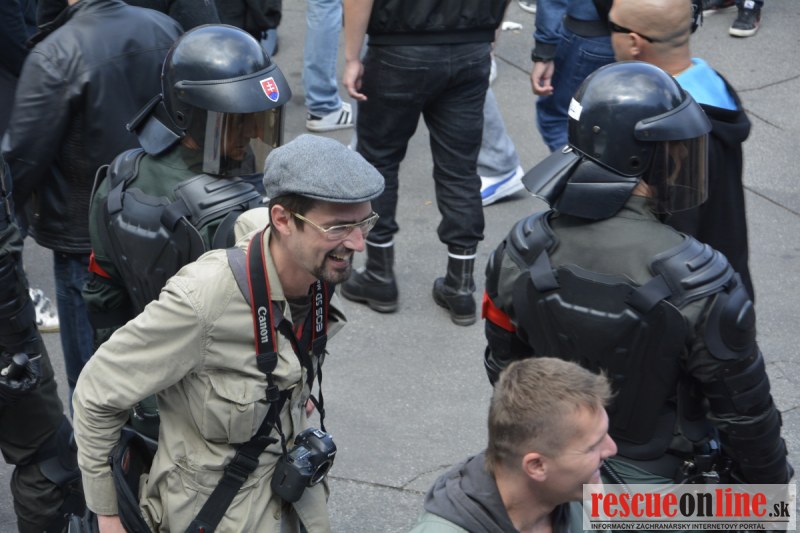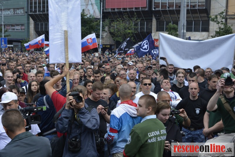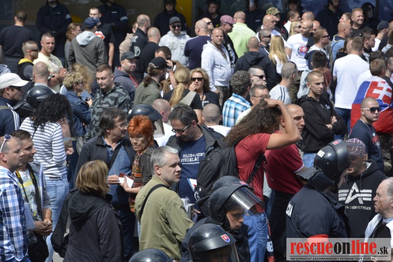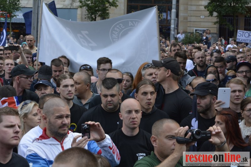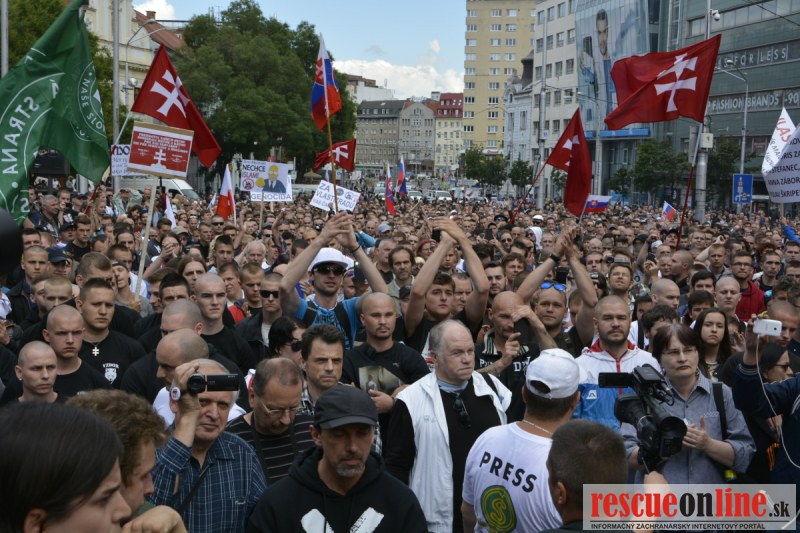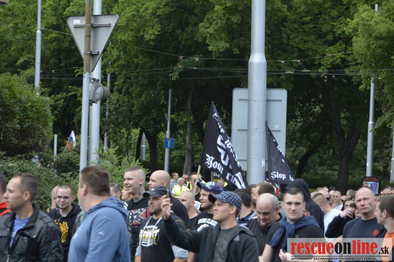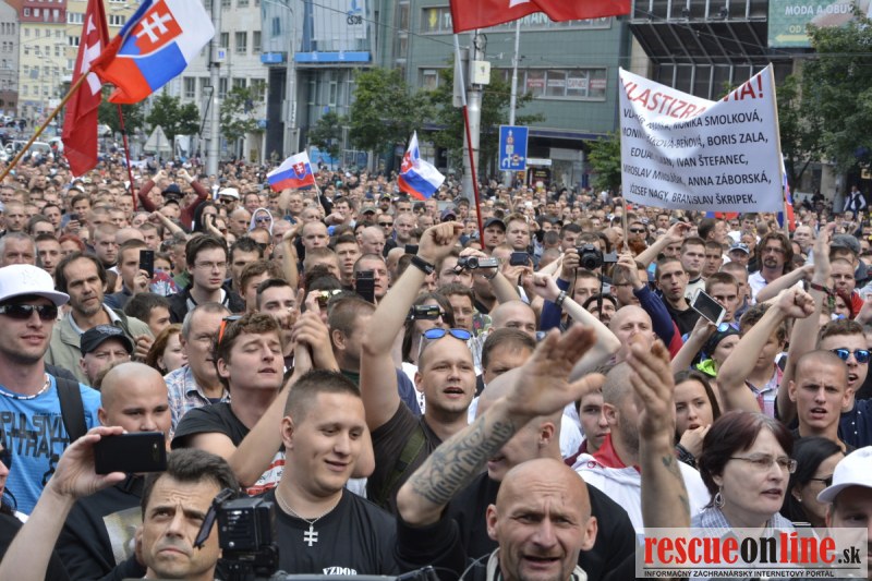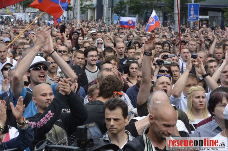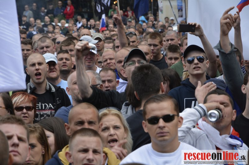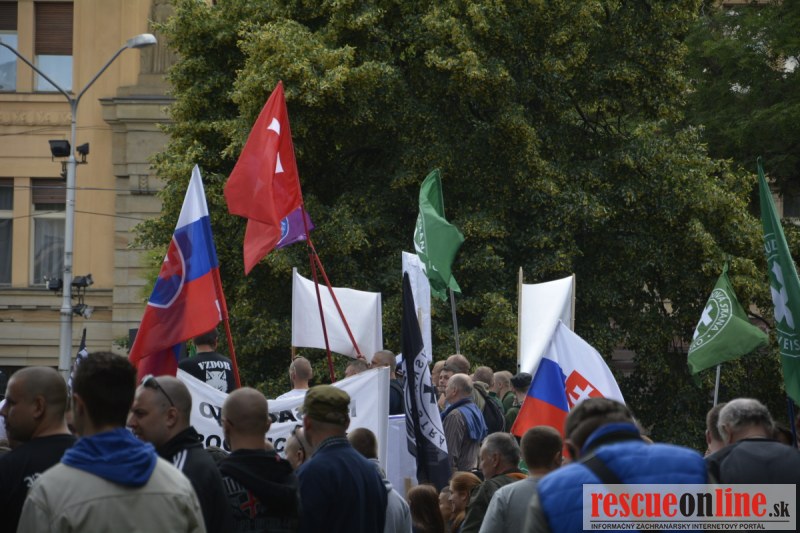 Bratislava | Ešte stále na námestí SNP prebieha občiansky protest izoskupenia Alternatívna cesta pod názvom STOP ISLAMIZÁCII EURÓPY, na ktorý prišli tisíce občanov krajiny. Zraz účastníkov protestu bol o 15.00 hodine na Hlavnej stanici a za doprovodu stoviek policajtov sa protestujúci presunuli na námestei SNP. Prísne bezpečnostné opatrenia sú znateľné v celom centre Bratislavy. Policajné autá so zásahovými jednotkami sa postupne presúvajú tam, kde sú očakávané nepokoje medzi účastníkmi protestu.