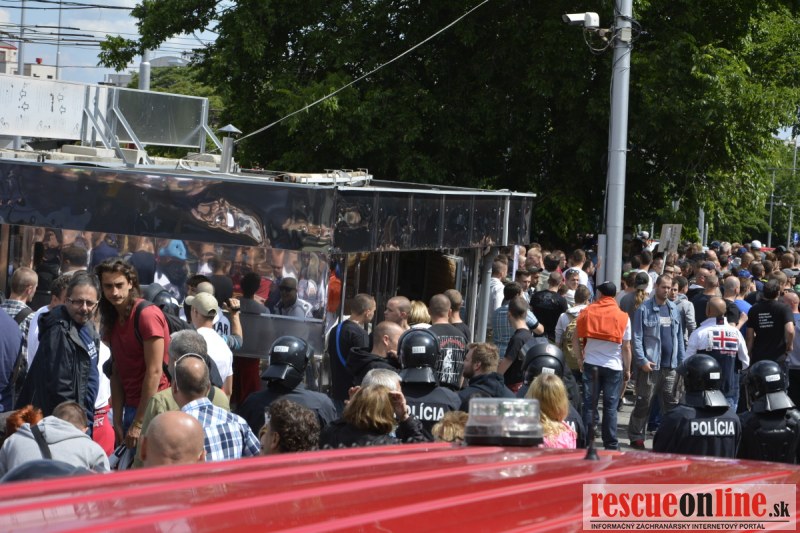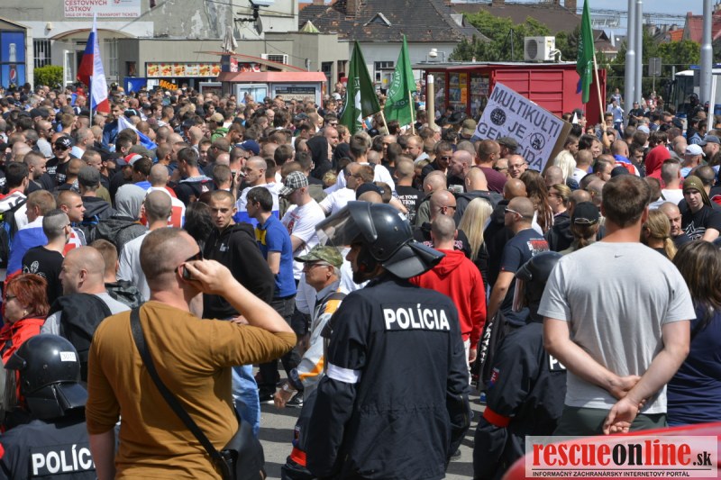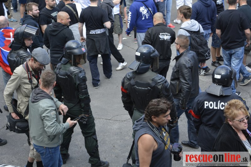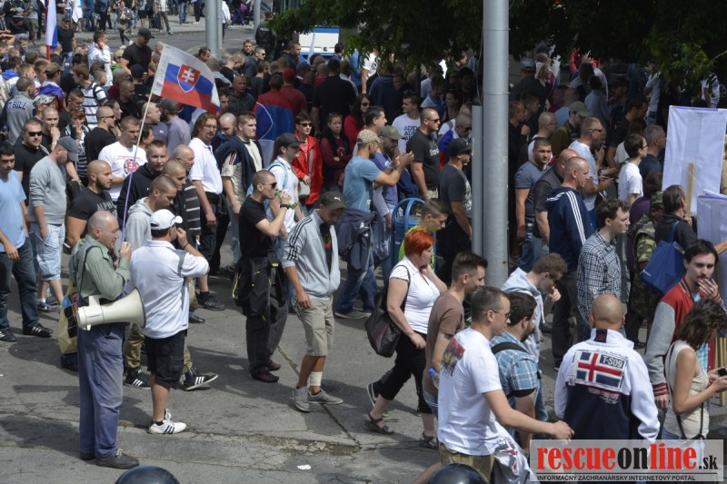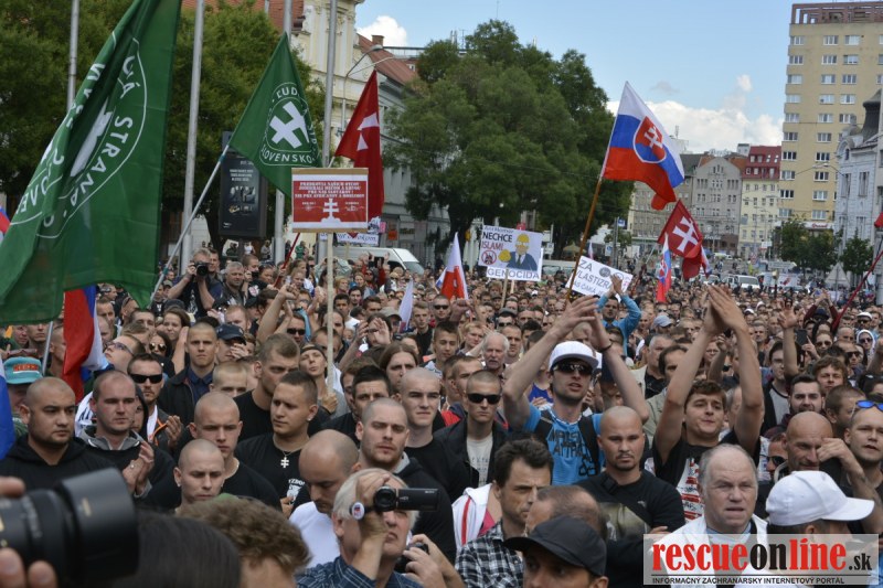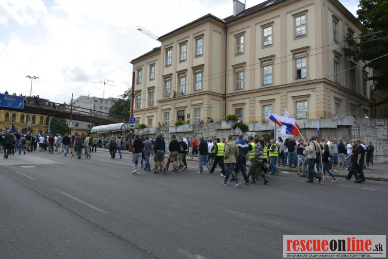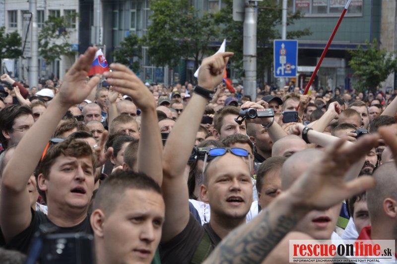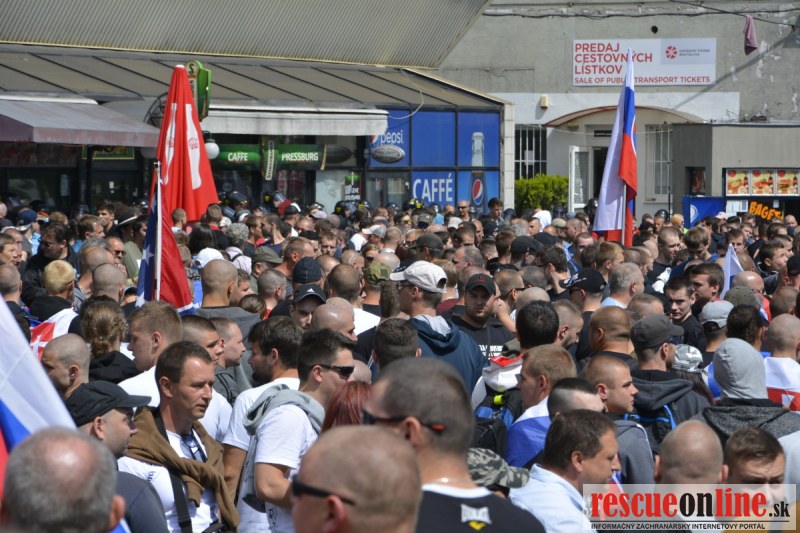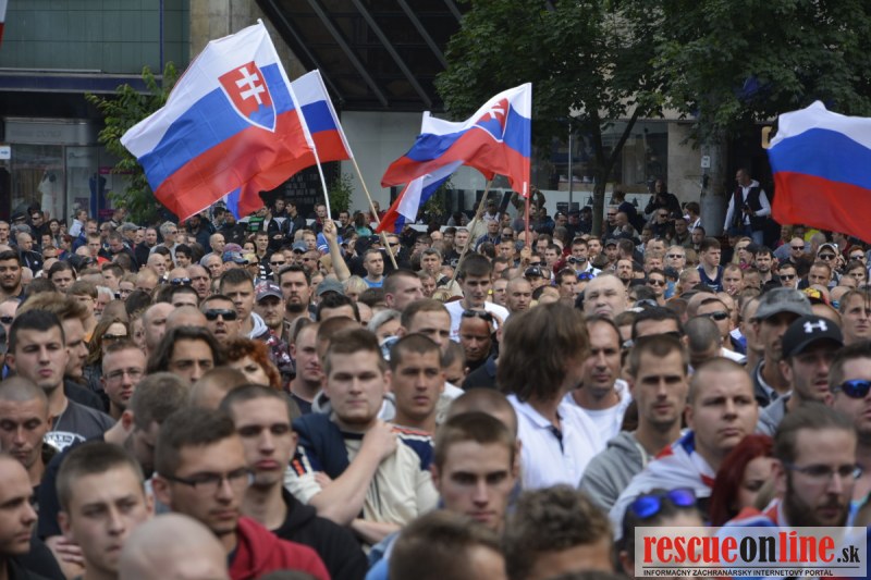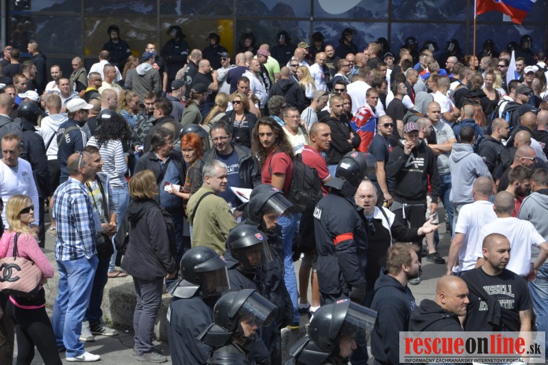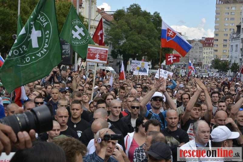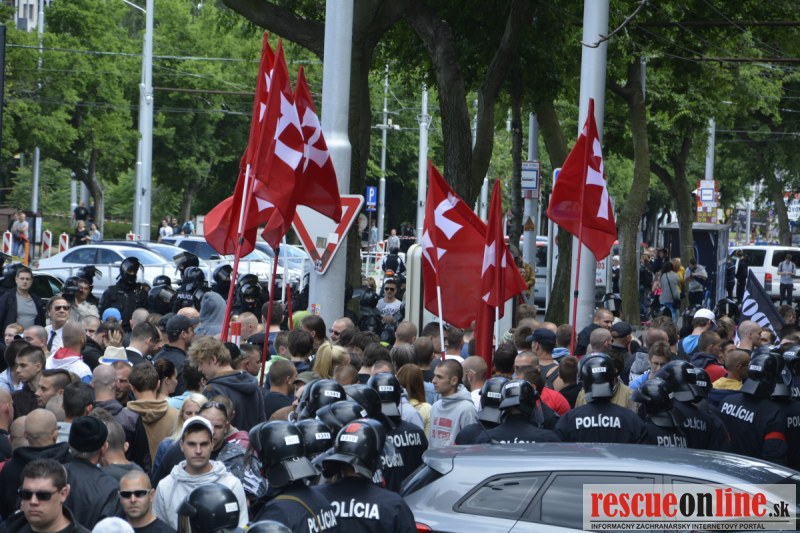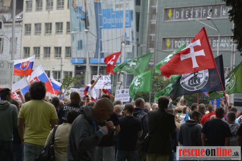 Bratislava | Ešte stále na námestí SNP prebieha občiansky protest izoskupenia Alternatívna cesta pod názvom STOP ISLAMIZÁCII EURÓPY, na ktorý prišli tisíce občanov krajiny. Zraz účastníkov protestu bol o 15.00 hodine na Hlavnej stanici a za doprovodu stoviek policajtov sa protestujúci presunuli na námestei SNP. Prísne bezpečnostné opatrenia sú znateľné v celom centre Bratislavy. Policajné autá so zásahovými jednotkami sa postupne presúvajú tam, kde sú očakávané nepokoje medzi účastníkmi protestu.