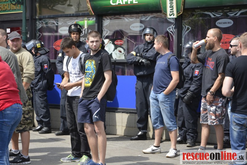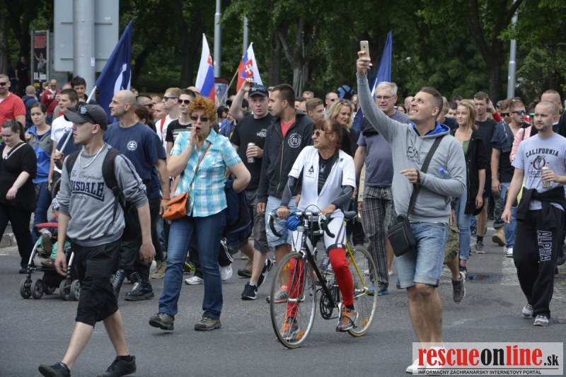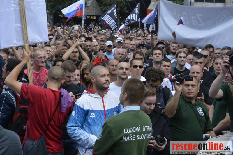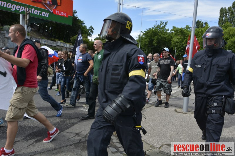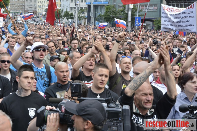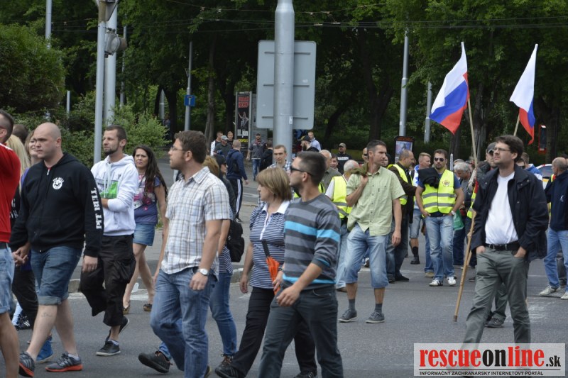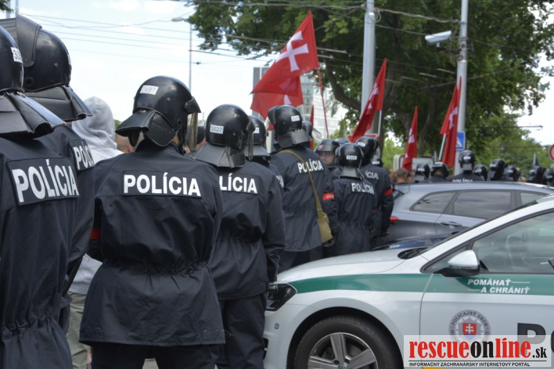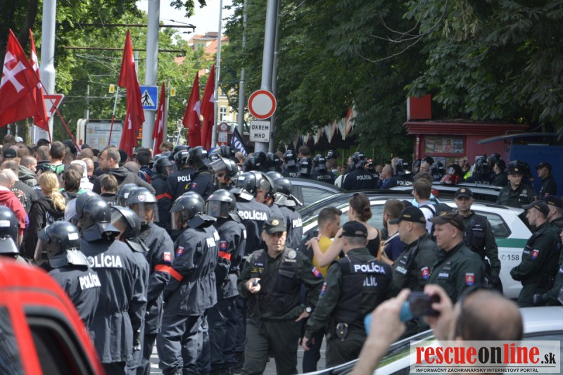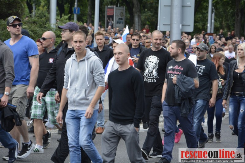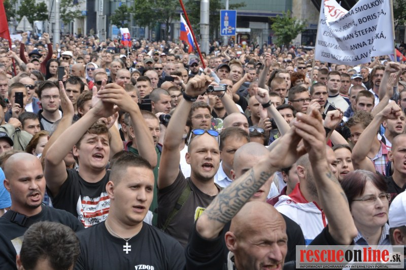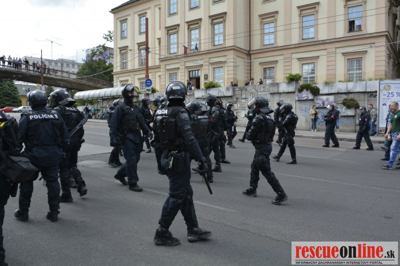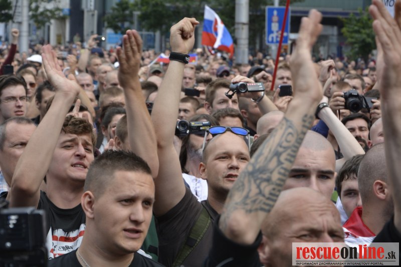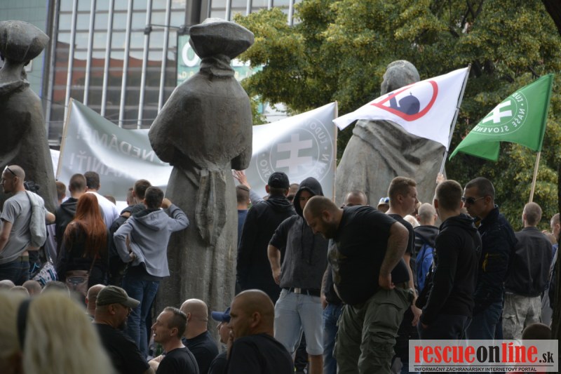 Bratislava | Ešte stále na námestí SNP prebieha občiansky protest izoskupenia Alternatívna cesta pod názvom STOP ISLAMIZÁCII EURÓPY, na ktorý prišli tisíce občanov krajiny. Zraz účastníkov protestu bol o 15.00 hodine na Hlavnej stanici a za doprovodu stoviek policajtov sa protestujúci presunuli na námestei SNP. Prísne bezpečnostné opatrenia sú znateľné v celom centre Bratislavy. Policajné autá so zásahovými jednotkami sa postupne presúvajú tam, kde sú očakávané nepokoje medzi účastníkmi protestu.