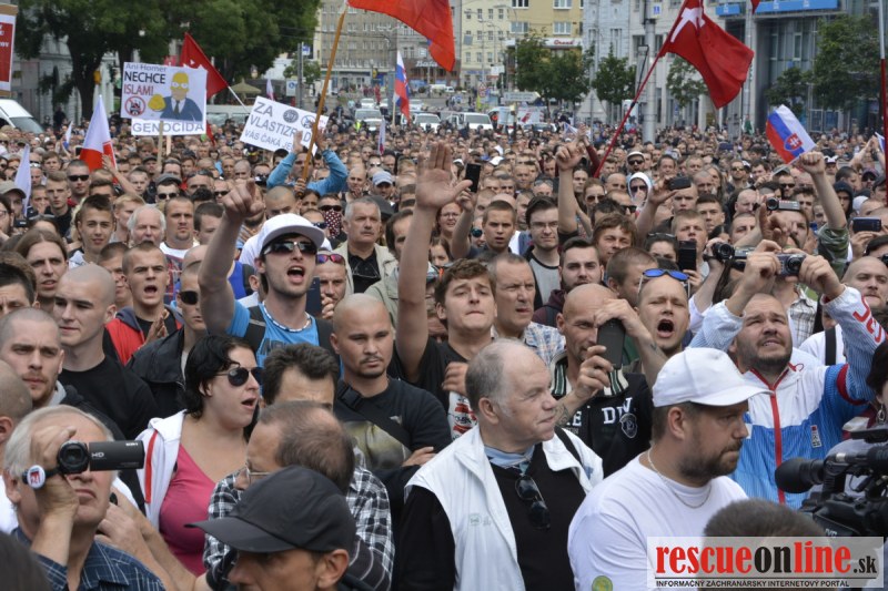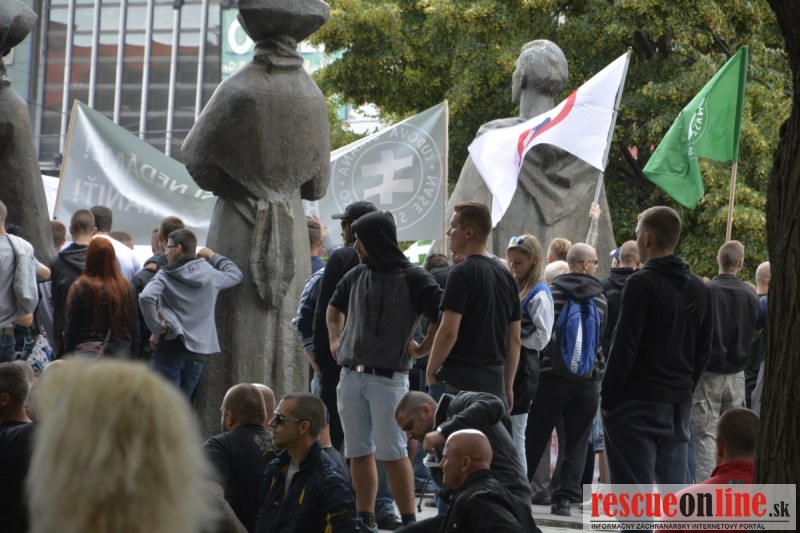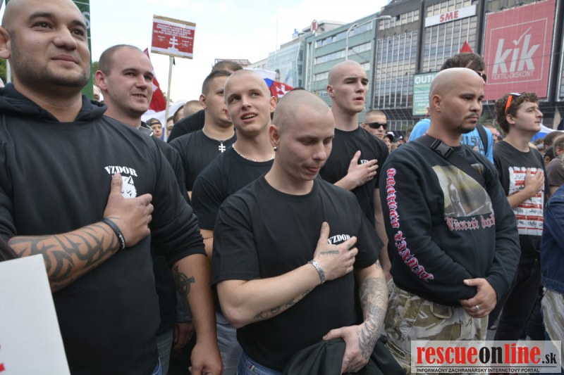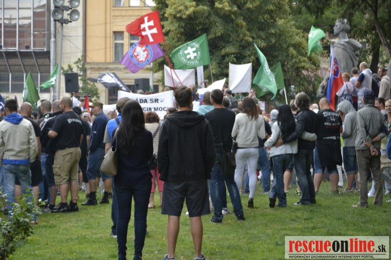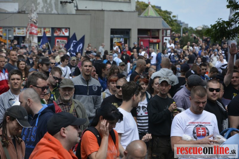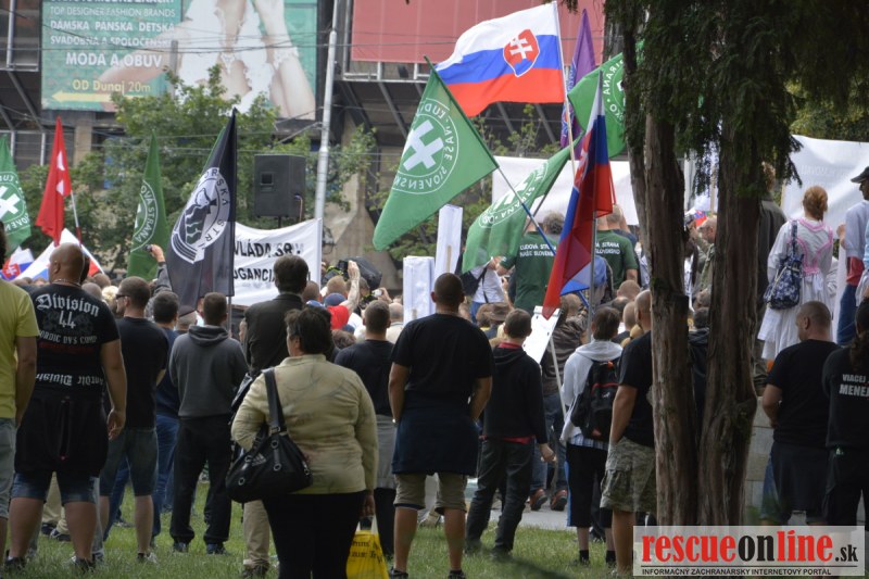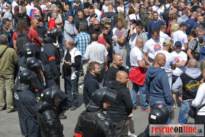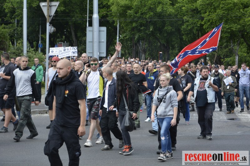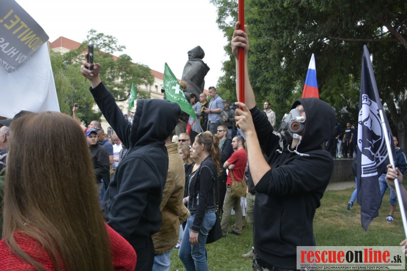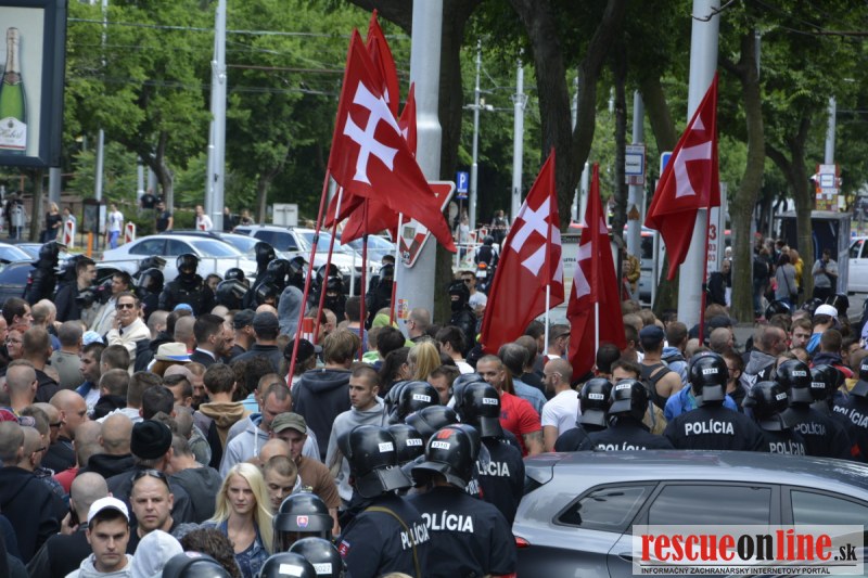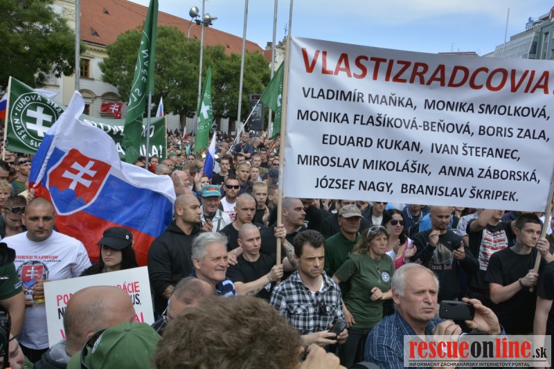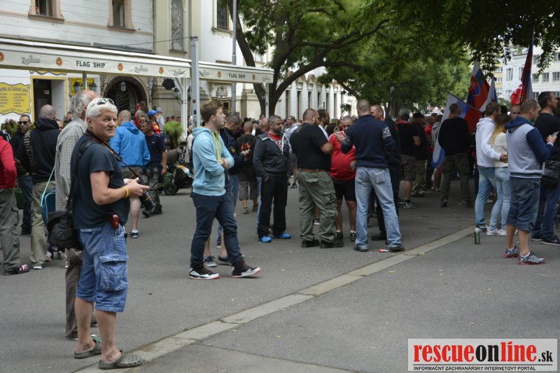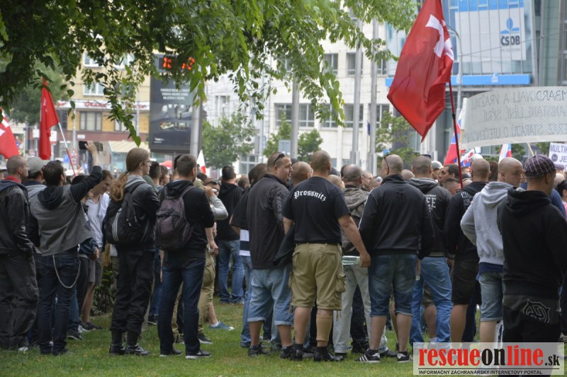 Bratislava | Ešte stále na námestí SNP prebieha občiansky protest izoskupenia Alternatívna cesta pod názvom STOP ISLAMIZÁCII EURÓPY, na ktorý prišli tisíce občanov krajiny. Zraz účastníkov protestu bol o 15.00 hodine na Hlavnej stanici a za doprovodu stoviek policajtov sa protestujúci presunuli na námestei SNP. Prísne bezpečnostné opatrenia sú znateľné v celom centre Bratislavy. Policajné autá so zásahovými jednotkami sa postupne presúvajú tam, kde sú očakávané nepokoje medzi účastníkmi protestu.