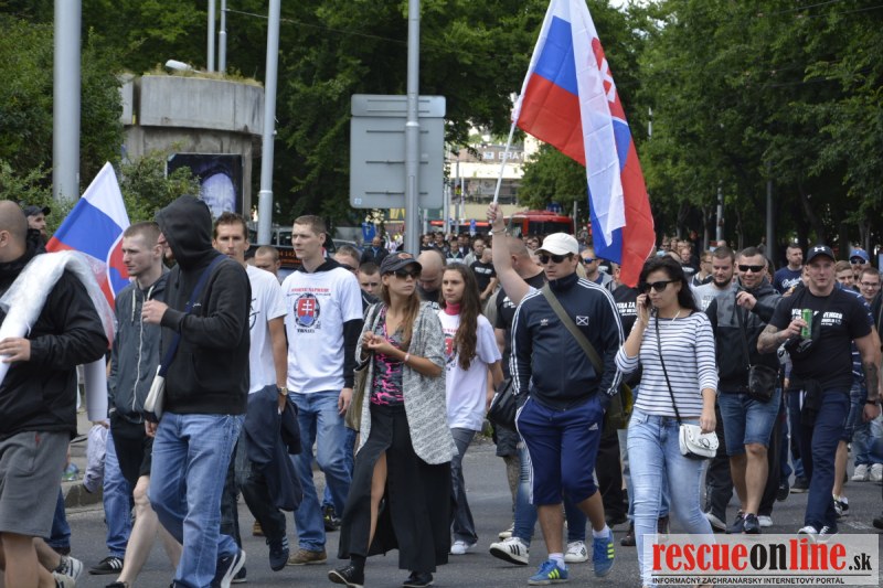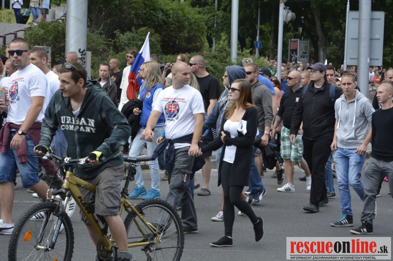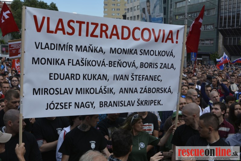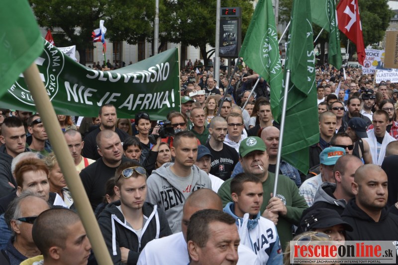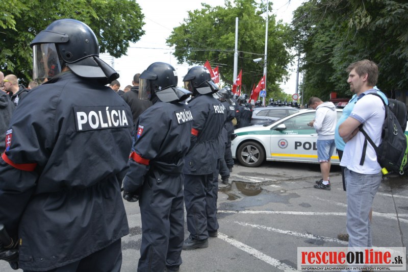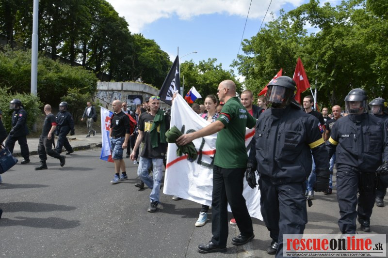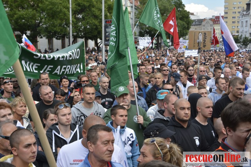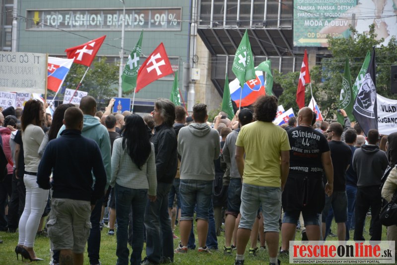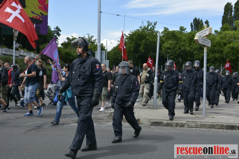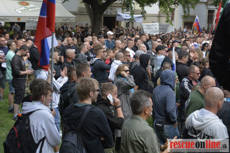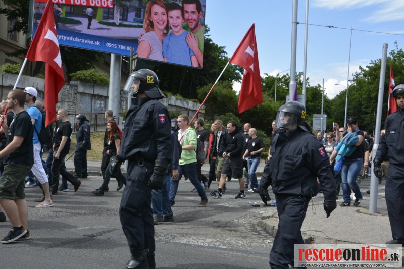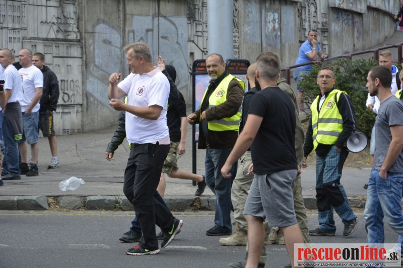 Bratislava | Ešte stále na námestí SNP prebieha občiansky protest izoskupenia Alternatívna cesta pod názvom STOP ISLAMIZÁCII EURÓPY, na ktorý prišli tisíce občanov krajiny. Zraz účastníkov protestu bol o 15.00 hodine na Hlavnej stanici a za doprovodu stoviek policajtov sa protestujúci presunuli na námestei SNP. Prísne bezpečnostné opatrenia sú znateľné v celom centre Bratislavy. Policajné autá so zásahovými jednotkami sa postupne presúvajú tam, kde sú očakávané nepokoje medzi účastníkmi protestu.