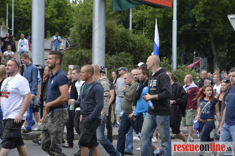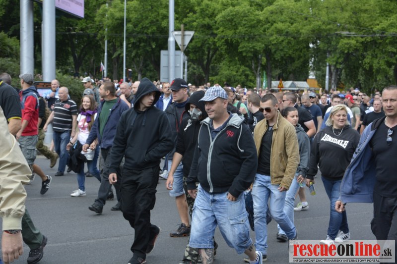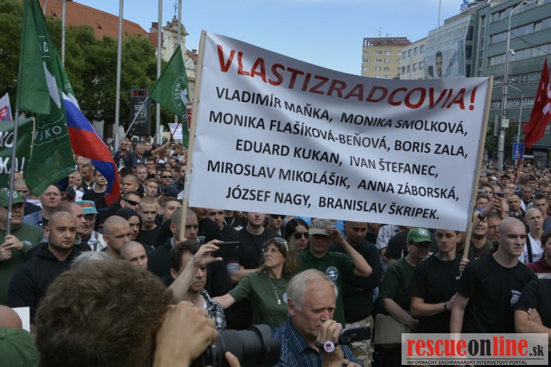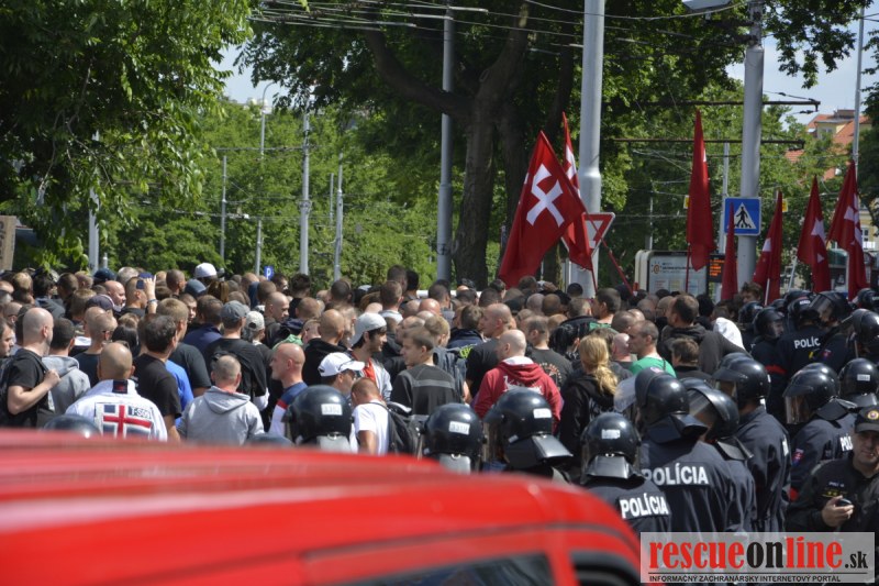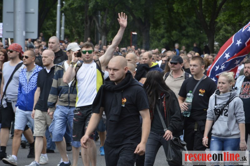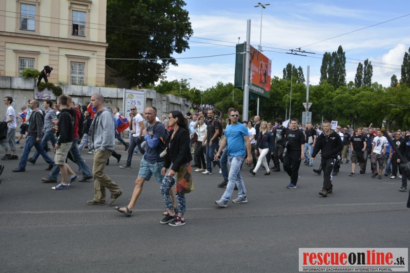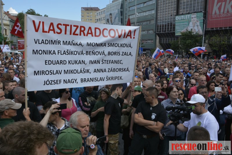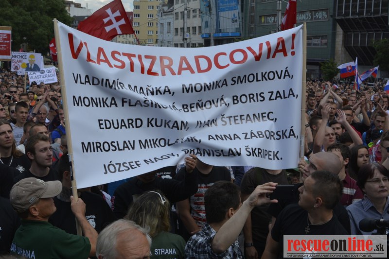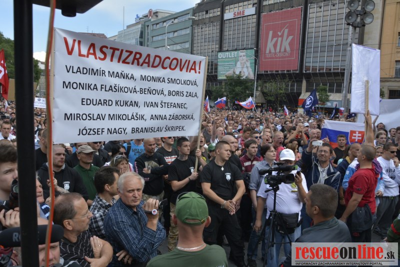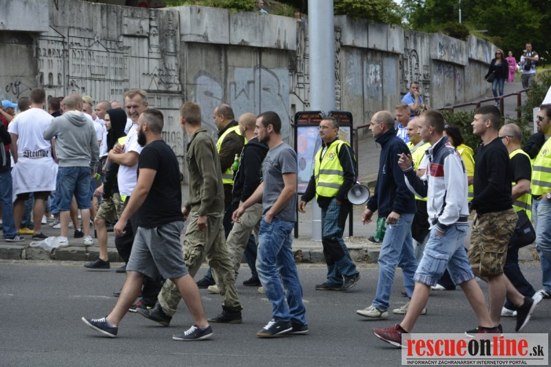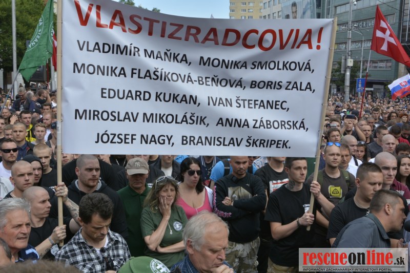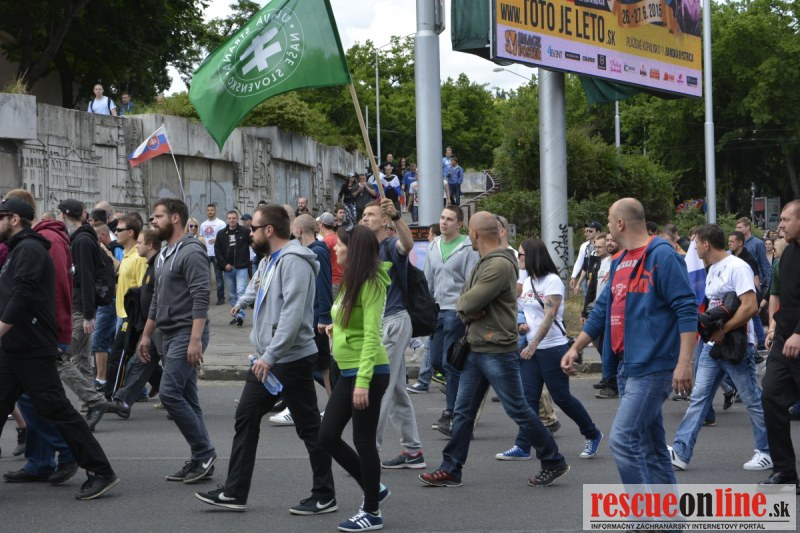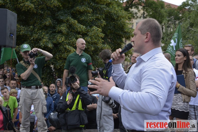 Bratislava | Ešte stále na námestí SNP prebieha občiansky protest izoskupenia Alternatívna cesta pod názvom STOP ISLAMIZÁCII EURÓPY, na ktorý prišli tisíce občanov krajiny. Zraz účastníkov protestu bol o 15.00 hodine na Hlavnej stanici a za doprovodu stoviek policajtov sa protestujúci presunuli na námestei SNP. Prísne bezpečnostné opatrenia sú znateľné v celom centre Bratislavy. Policajné autá so zásahovými jednotkami sa postupne presúvajú tam, kde sú očakávané nepokoje medzi účastníkmi protestu.