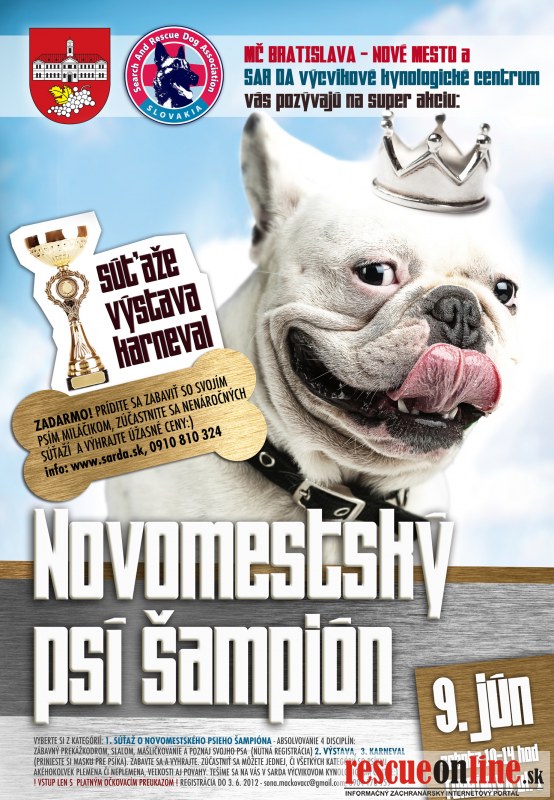 SAR DA Slovakia |MM| MČ Bratislava - Nové Mesto a SAR DA výcvikové kynologické centrum Vás pozývajú dňa 9. júna 2012 na super akciu. Príďte sa zabaviť so svojim psím miláčikom, zúčastniť sa nenáročných súťaží a vyhrať úžasné ceny.