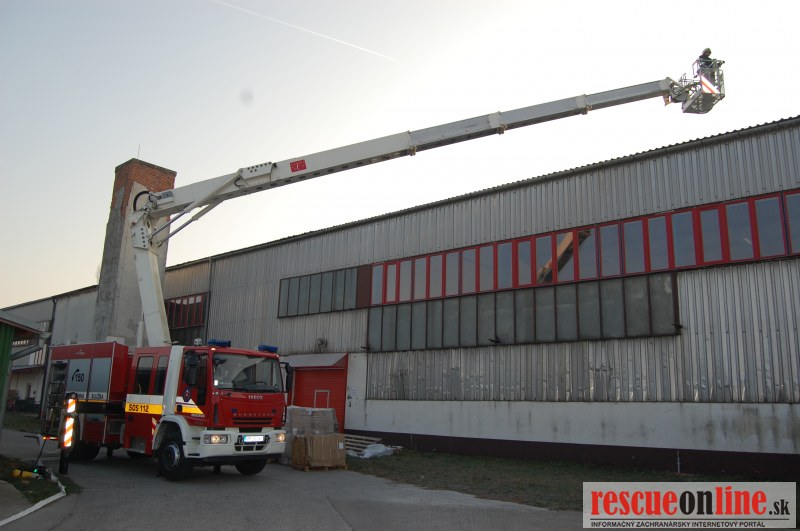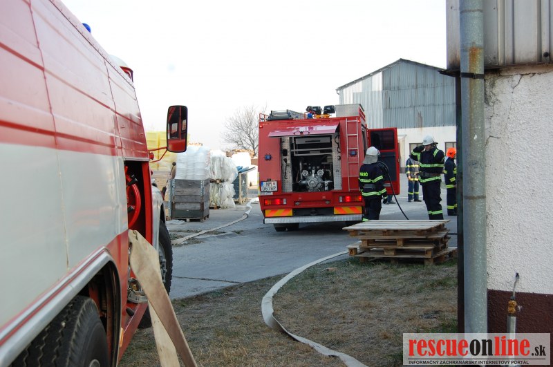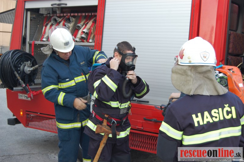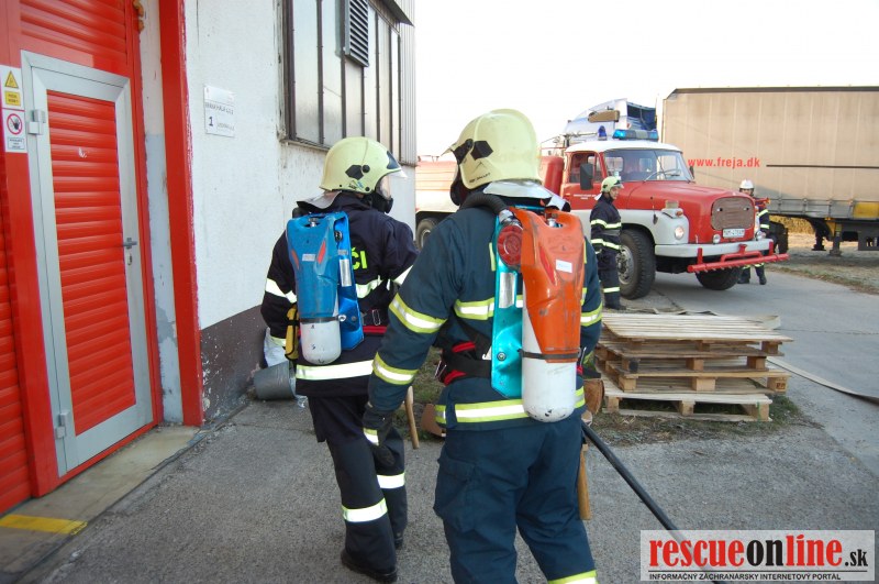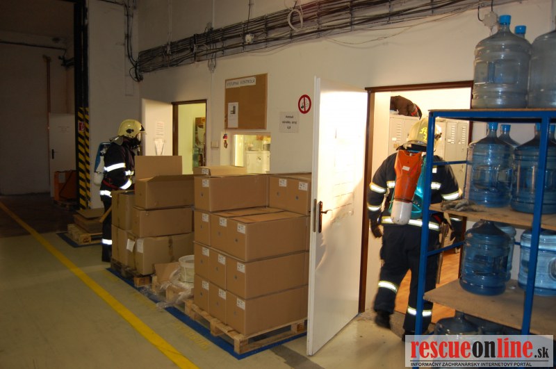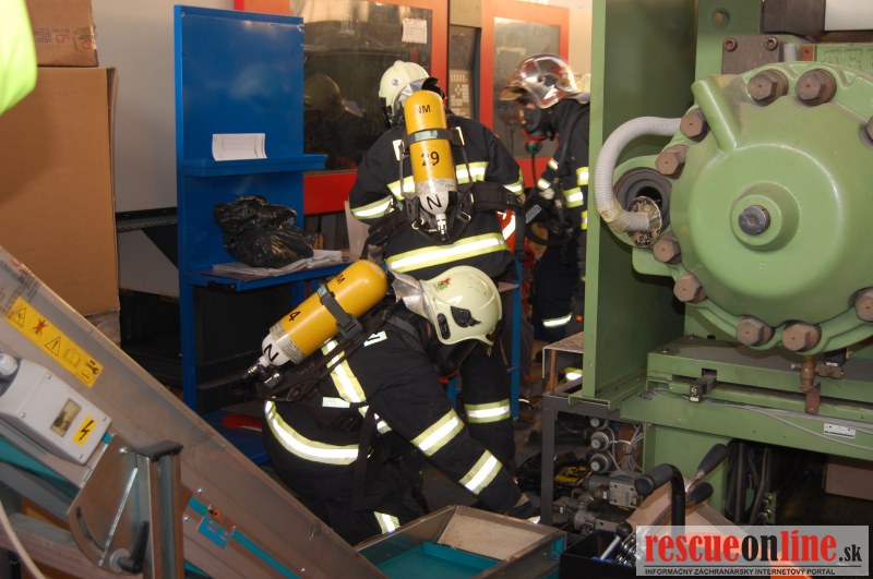 Wolsvagen Transporter 1 + 1 člen, Mercedes Vario 815 1 + 3 členovia a s technikou Tatra 148/CAS 32 1 + 2 členovia OHZ. Členovia OHZ vytvorili útočné vedenie do vnútra výrobnej haly pomocou jedného vysokotlakého prúdu z vozidla Mercedes Vario 815 a prieskumná skupina v zložení dvoch členov OHZ vystrojená ADP /autonomný dýchací prístroj/, odstavila v hale elektrický prúd a prívod plynu. Po vytvorení útočného prúdu boli v hale nájdené 2 zranené osoby, vzápätí sa na miesto udalosti dostavila jednotka Okresného riaditeľstva HaZZ s technikou Iveco Magirus 1+ 5 príslušníkov, ktorí vytvorili z vozidla Iveco ďalší vysokotlaký útočný prúd a dvaja príslušníci HaZZ,