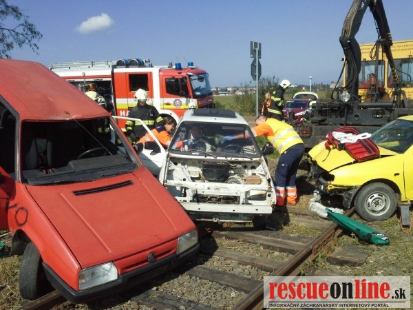 – dopravnej nehode na nechránenom železničnom priecestí v katastri obce Biskupice kde bola simulovaná zrážka troch osobných motorových vozidiel, do ktorých následne narazil prichádzajúci vlak,