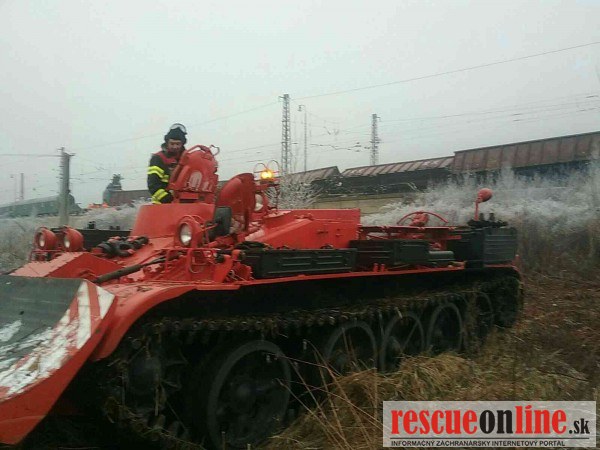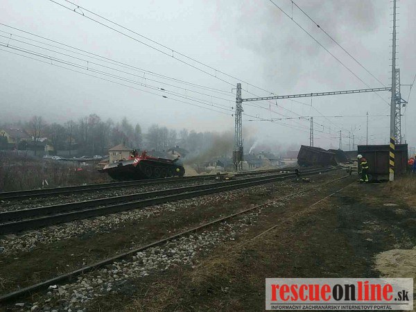 Ťažká hasičská technika pomáha pri odstraňovaní vykoľajených vagónov v Krompachoch