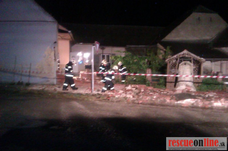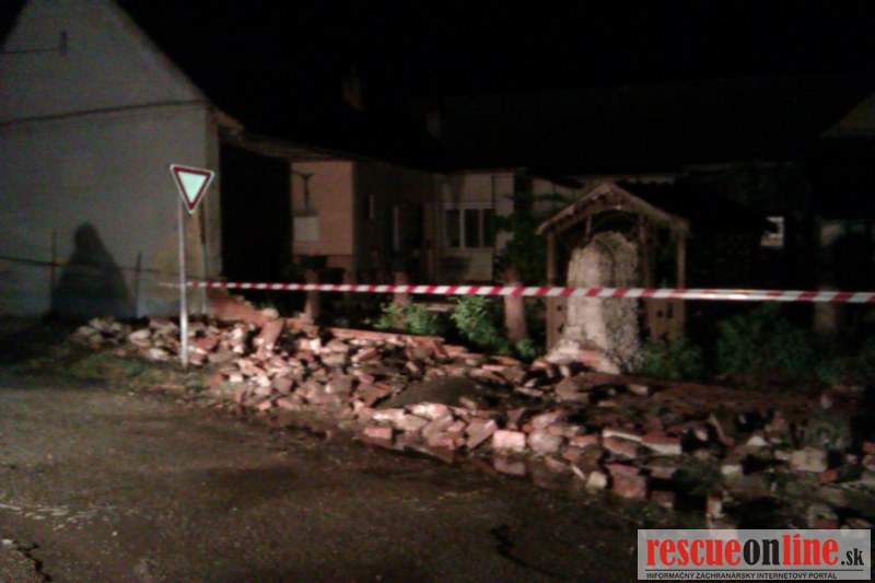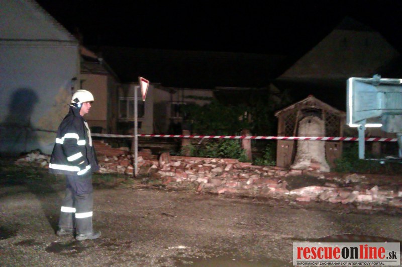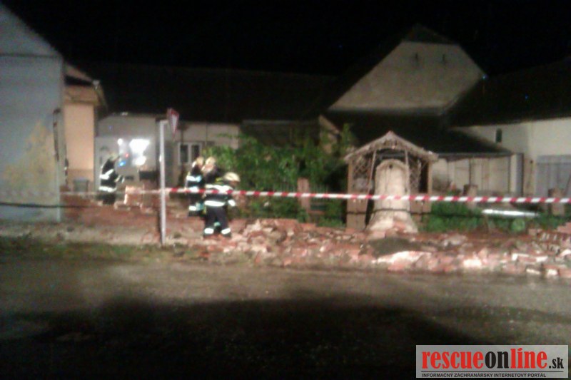 OHZ Pobedim |MM| Technický zásah 4.8.2013 21.56 hod.- padnutý murovaný plot v obci Pobedim, vyslaná technika AHZS MB Vario a VW Transporter + 8 členov OHZ Pobedim zásah trval do 00.19 hod.