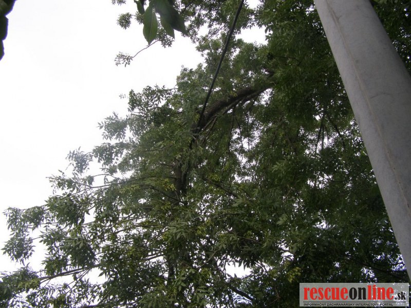 KR HaZZ Trnava |MM| Na operačné stredisko OR HaZZ v Trnave bol v nedeľu 19. júna 2011 o 17:03 hod. nahlásený odlomený konár na elektrickom vedení na ul. T. Vansovej v Trnave. Na miesto udalosti boli vyslaní piati príslušníci HaZZ s hasičskou technikou MB Atego a Nissan Navara. O udalosti bola vyrozumená poruchová služba. Po príchode na miesto udalosti bolo zistené, že na elektrickom vedení vo výške cca šesť metrov visí ulomený konár stromu. Veliteľ zásahu si na miesto udalosti vyžiadal automobilovú plošinu Bronto. Na miesto udalosti sa dostavila polícia PMJ Trnava. Miesto udalosti bolo vyznačené kužeľmi, nakoľko konár visel nad chodníkom. Po príchode dvoch príslušníkov HaZZ na AP Bronto bol ulomený konár popílený pomocou motorovej píly a odstránený z elektrického vedenia. Následkom pádu konára na elektrické vedenie došlo k poškodeniu svorkovnice na el. stĺpe. Po ukončení zásahu sa jednotka o 17:47 hod. vrátila na základňu.