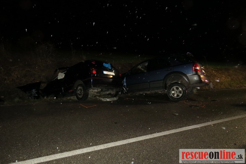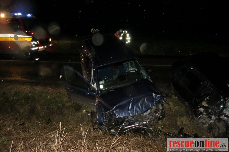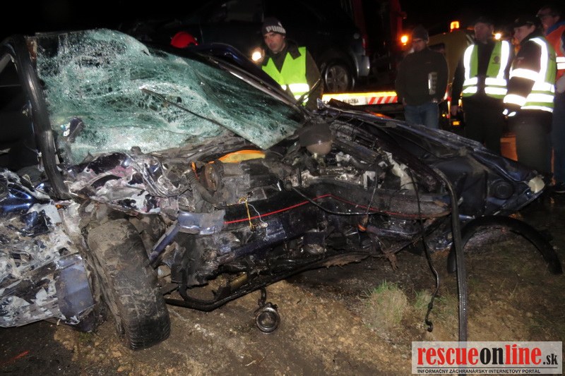 Pri dopravnej nehode sa smrteľne zranil 33 ročný spolujazdec vo VW Golf a mladá žena za volantom podľahla utŕženým zraneniam po prevoze do nemocnice. Vo vozidle Kia sa viezla rodina z Nedašoviec / okr. Bánovce nad Bebravou/. 40 ročný vodič Kie, jeho rovnako stará manželka a 6 ročná dcérka utrpeli ľahké zranenia.