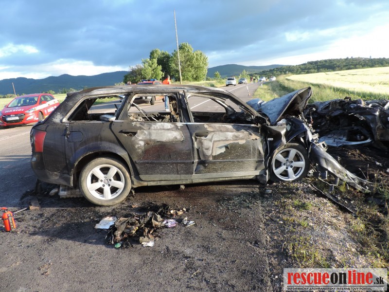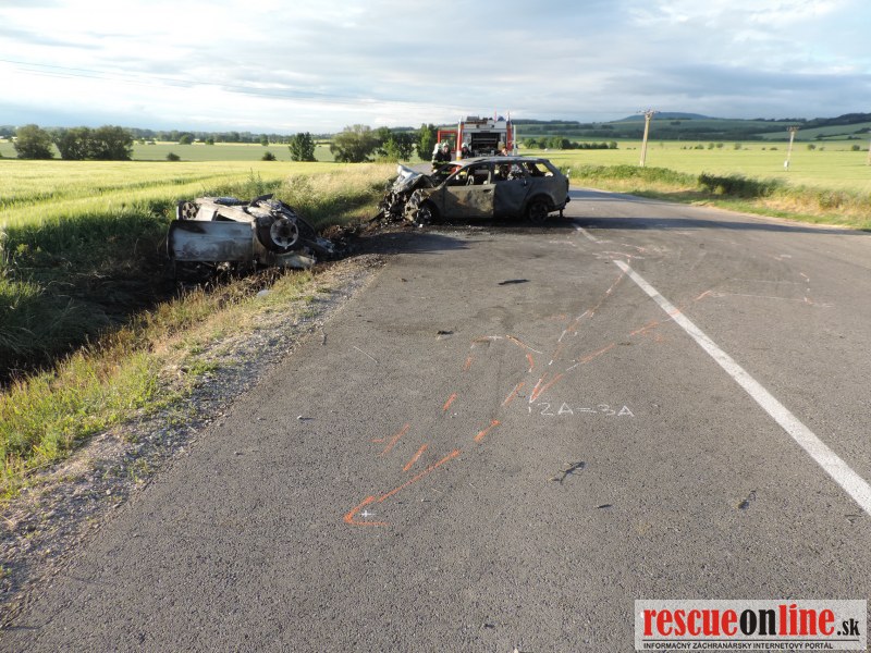 Po náraze sa obe autá vznietili a osádka VW Golf v plameňoch zahynula - 55 ročná žena a jej 31 ročný syn. V Audi A4 sa ľahko zranil jej 24 ročný vodič. Jeho 26 ročného spolujazdca museli s ťažkými zraneniami previezť do nitrianskej nemocnice.