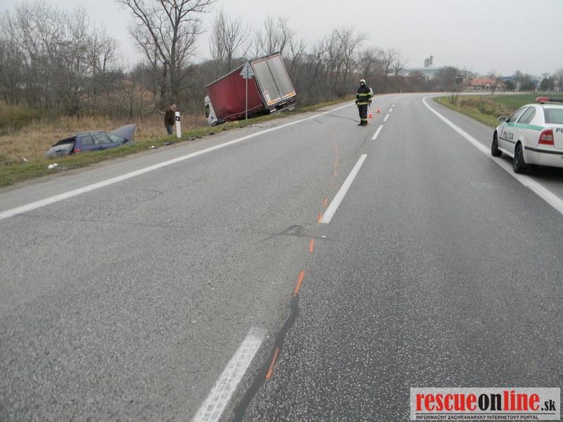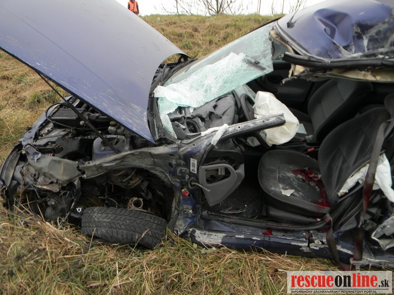 45 ročný vodič nákladného Renaultu Premium prešiel z doposiaľ nezistených príčin do protismeru, kde sa zrazil s osobným vozidlom Peugeot 406. Jeho 41 ročný vodič zrážku s nákladným autom neprežil.
