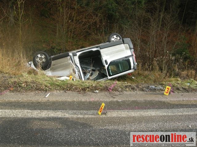 KRPZ Žilina |MM| Vo štvrtok 29. novembra okolo 07.30 hod. došlo v katastri obce Kolárovice, okres Bytča k vážnej dopravnej nehode. 33 ročný vodič z Českej republiky riadil nákladné motorové vozidlo Man po ceste I/18 v smere od Makova na Bytču. Pred obcou Kolárovice predchádzal motorové vozidlo. Prešiel do protismeru, kde sa čelne zrazil s vozidlom Opel Vivaro, ktoré v opačnom smere jazdy riadil 43 ročný muž z okresu Topoľčany. Vozidlo Opel po zrážke odhodili mimo vozovku, kde sa prevrátilo na strechu. Jeho vodič utrpel ťažké zranenia. Následne bol prevezený do nemocnice, kde žiaľ zraneniam podľahol. U vodiča vozidla Man alkohol zistený nebol. Na vozidlách vznikla predbežná škoda vo výške 20.000.-€.
