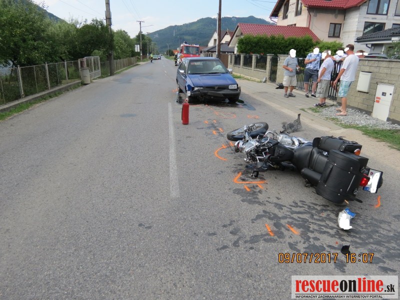 KRPZ Trenčín |MM| V nedeľu 10.júla v poobedňajších hodinách (cca o15.27 hod.) sa stala na ceste II/517 v obci Domaniža, okr. Považská Bystrica dopravná nehoda medzi osobným autom zn. Škoda Felícia a motocyklom zn. Yamaha.