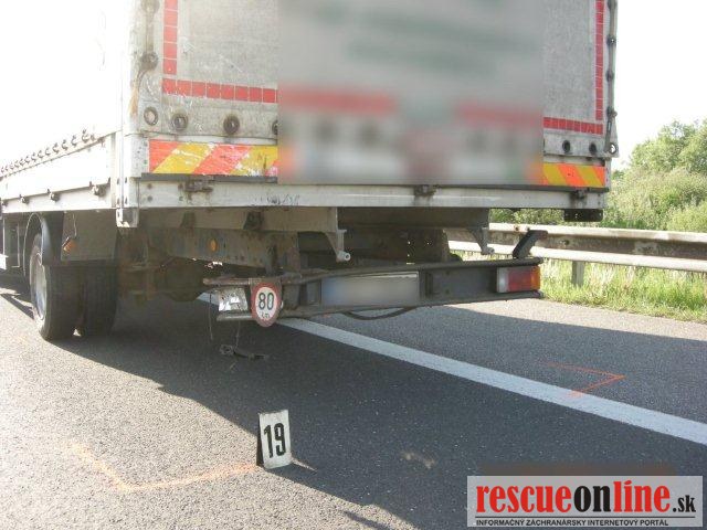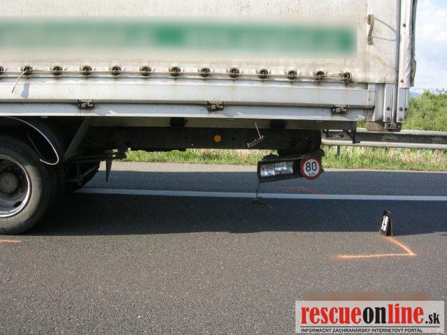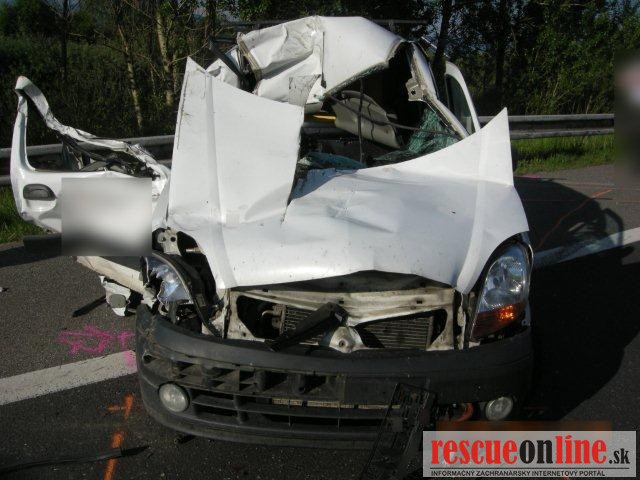 KRPZ Žilina |MM| V stredu 21. mája popoludní (v čase o 15.43 hod.) došlo na diaľnici (D1) v katastri obce Závažná Poruba (okres Liptovský Mikuláš) k tragickej dopravnej nehode. 64 ročný vodič (z Martina) viedol motorové vozidlo Renault Kangoo Express po diaľnici v smere od Liptovského Hrádku na Liptovský Mikuláš. V pravom jazdnom pruhu z doposiaľ presne nezistených príčin narazil prednou časťou vozidla do zadnej časti pred ním idúceho nákladného motorového vozidla Iveco. Vozidlo Iveco viedol 41 ročný muž (z Českej republiky). Pri dopravnej nehode utrpel 30 ročný spolujazdec (z okresu Turčianske Teplice) z vozidla Renault zranenia, ktorým žiaľ na mieste podľahol. Vodič z vozidla Iveco bol jednorazovo ošetrený. Na ošetrenie bol s ľahkými zraneniami prepravený vodič z vozidla Renault. Alkohol u vodičov zistený nebol. Hmotná škoda bola predbežne vyčíslená na 7.000.-€. Na nevyhnutne potrebný čas bola diaľnica v uvedenom úseku uzavretá z dôvodu zásahu vrtuľníka záchrannej služby. Následne bol sprejazdnený ľavý jazdný pruh a premávka bola riadená príslušníkmi Policajného zboru. Diaľnica bola úplne sprejazdnená v oboch jazdných pruhoch krátko po 19.00 hodine.