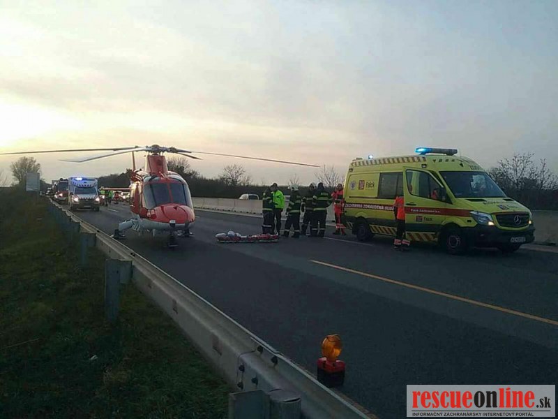 ATE | Posádka leteckých záchranárov z Bratislavy bola dnes popoludní privolaná k dopravnej nehode, ktorá sa stala na diaľnici D1 pri Trnave. V osobnom aute, v ktorom sa nachádzali dve osoby, skončilo prevrátené mimo vozovky. Vodič poľskej národnosti utrpel zranenia, ktorým na mieste, žiaľ, podľahol. Leteckí záchranári si na mieste od rýchlej lekárskej pomoci prevzali 54-ročnú ženu, ktorá utrpela vážne zlomeniny oboch horných končatín a poranenie hlavy. Lekár leteckých záchranárov jej doplnil ďalšiu nevyhnutnú liečbu a po preložení na palubu vrtuľníka bola poľská pacientka v stabilizovanom stave, pri vedomí letecky transportovaná do Fakultnej nemocnice v Trnave.