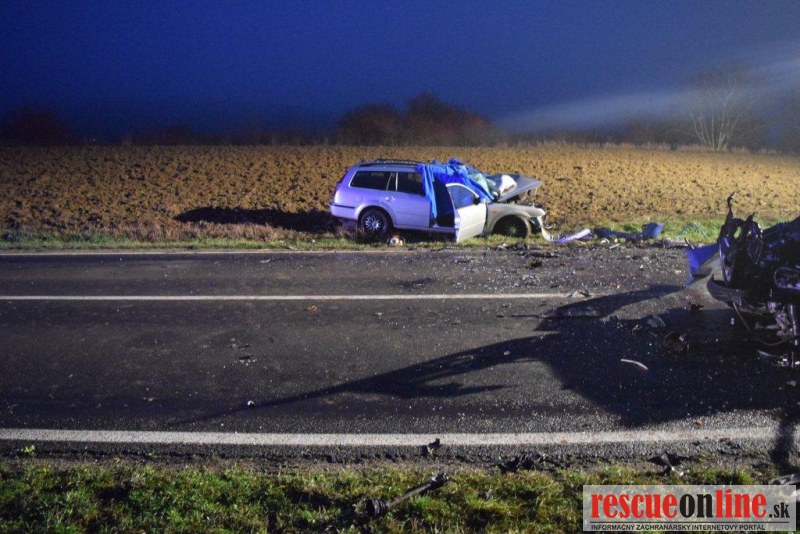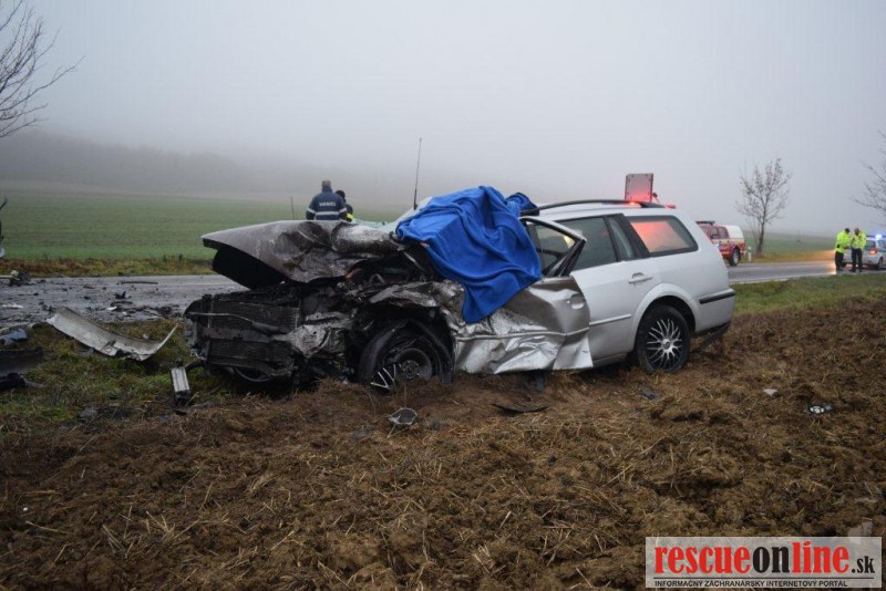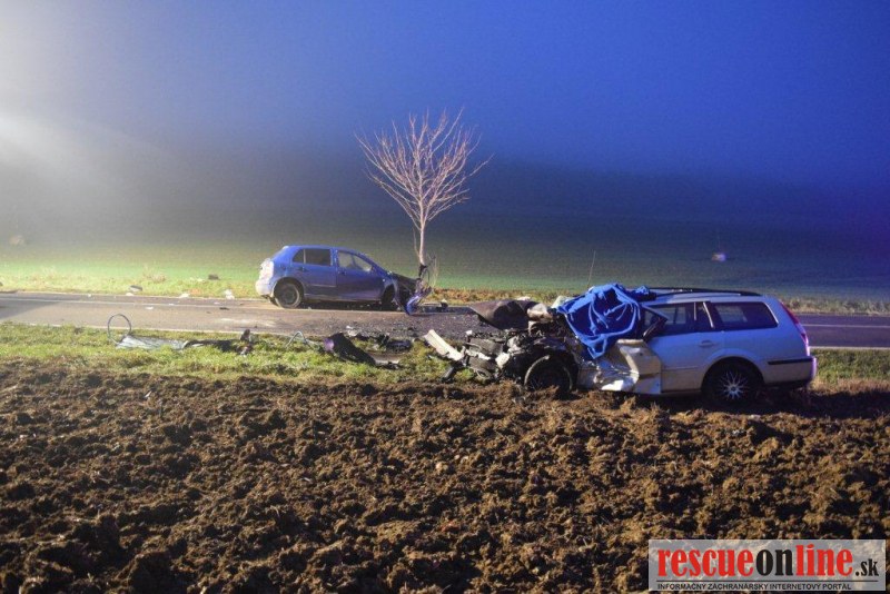 Polícia dokumentuje dopravnú nehodu, ktorá sa stala dnes na ceste druhej triedy medzi Hlohovcom a Kľačanmi. Osobné auto Škoda Fabia sa pohybovalo v smere od Hlohovca na Kľačany. Asi o 05.30 h prešlo z nezistených príčin do protismeru, kde sa zrazilo s oproti idúcim Fordom Mondeo. V dôsledku zrážky utrpel 51 ročný vodič Fordu z Kľačian zranenia, ktorým na mieste podľahol. Jeho spolujazdkyňa a 24 ročný vodič Fabie, rovnako z Kľačian, sa zranili a boli prevezení do nemocnice. Rozsah ich zranení zatiaľ nie je presne známy. V blízkosti nehody polícia uzatvorila cestu z oboch smerov a usmerňovala premávku po okolitých cestách. Príčiny a okolnosti nehody polícia vyšetruje aj za pomoci znalcov. V týchto chvíľach je cesta už prejazdná.