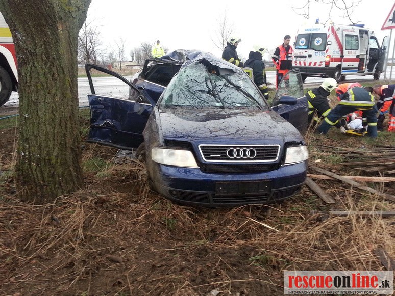 KR HaZZ Trnava |MM| Dňa 15. marca 2014 po 16.00 hod. bola ohlásená dopravná nehoda osobného motorového vozidla značky Audi A6 na ceste č. I/61 medzi obcami Červeník a Madunice (okres Hlohovec). Vodič osobného automobilu bočne narazil do stromu pri ceste a následkom nárazu zostal zakliesnený vo vraku havarovaného vozidla. Zasahujúci hasiči zraneného vodiča vyslobodili z vozidla a odovzdali ho do starostlivosti zdravotníkom Záchrannej zdravotnej služby. Vodič zraneniam podľahol. V čase dopravnej nehody sa vo vozidle nenachádzala iná osoba.