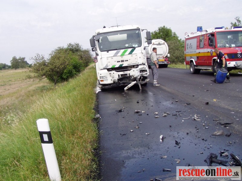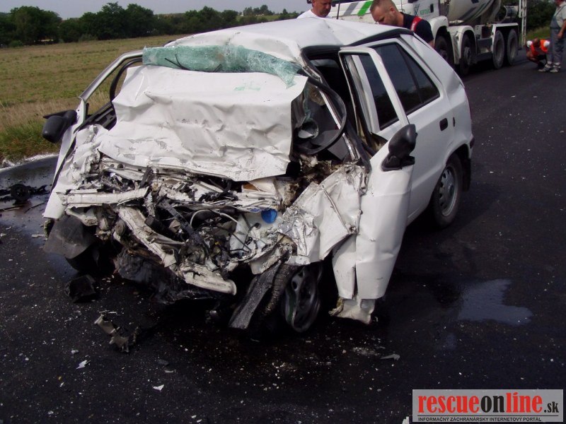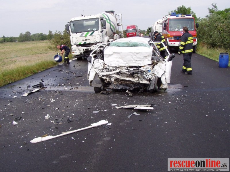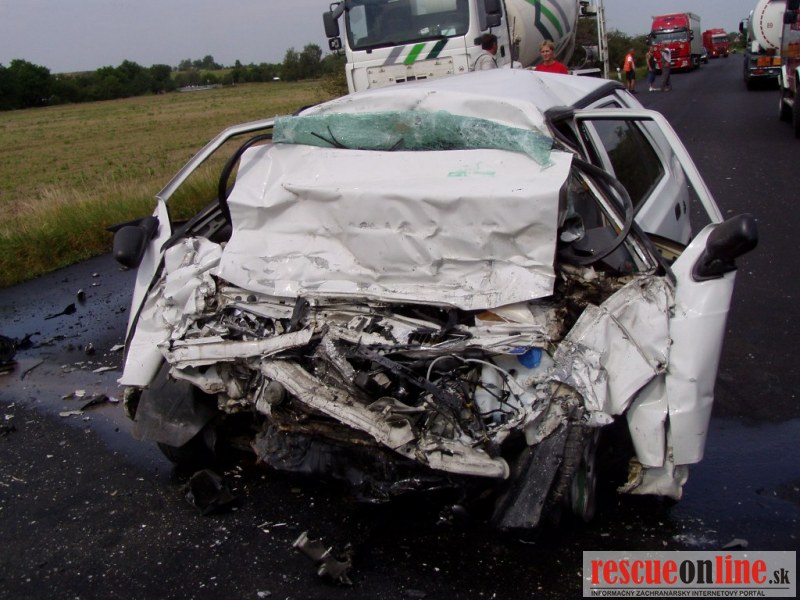 KR HaZZ Trnava |MM| Na operačné stredisko KR HaZZ v Trnave bola 21.8.2012 o 11:16 hod. oznámená dopravná nehoda nákladného vozidla s osobným motorovým vozidlom. Na miesto udalosti bola vyslaná z hasičskej stanice v Holíči technika AHZS MB Atego a AHZS MB Vario so 4 príslušníkmi. Po príjazde na miesto udalosti bolo zistené, že v osobnom motorovom vozidle sa nachádzajú dve osoby, ktoré nejavia známky života a lekár u nich skonštatoval smrť. Hasičská jednotka zabezpečila miesto udalosti proti vzniku požiaru a neutralizovala vytečené prevádzkové kvapaliny sorbentom. V týchto chvíľach hasiči začínajú s vyslobodzovaním tiel z havarovaného vozidla.