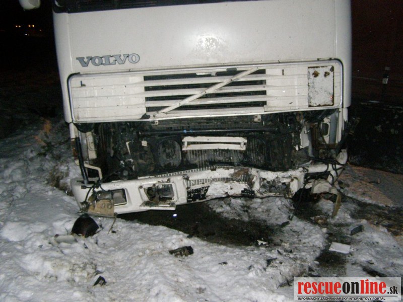 KR HaZZ v Trnave | IT | Na ohlasovňu požiarov HS v Hlohovci bola prostredníctvom operačného strediska KR HaZZ v Trnave dňa 10.12.2012 o 19:57 hod. nahlásená dopravná nehoda kamiónu a jedného osobného motorového vozidla na štátnej ceste č. I/61 pred obcou Madunice v smere od Červeníka. Na miesto udalosti boli vyslaní štyria príslušníci z hasičskej stanice v Hlohovci s technikou AHZS MB ATEGO a CAS 30 IVECO TRAKKER. Po príjazde na miesto udalosti bolo zistené, že sa jedná o dopravnú nehodu macedónskeho kamiónu značky VOLVO a jedného osobného motorového vozidla značky OPEL TIGRA s jednou zakliesnenou osobou. Príslušníci HaZZ vyslobodili pomocou hydraulického vyslobodzovacieho zariadenia zakliesnenú osobu z havarovaného vozidla, zabezpečili havarované vozidlá proti vzniku požiaru a osvetľovali miesto udalosti osvetľovacím agregátom. Prítomný službukonajúci lekár ZZS konštatoval u postihnutej osoby exitus, šofér kamiónu vyviazol z nehody bez zranení so šokovými príznakmi. Na mieste udalosti sa nachádzali príslušníci PZ SR, ktorí riadili premávku a dokumentovali dopravnú nehodu. Hasičská jednotka sa po zbalení vecných prostriedkov a zdokumentovaní udalosti vrátila o 22:09 hod. na svoju základňu.