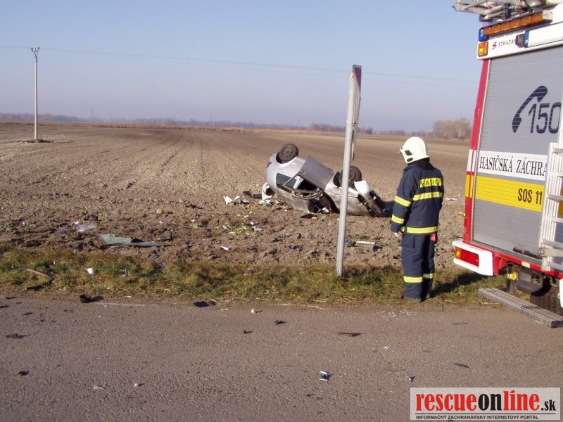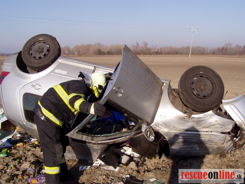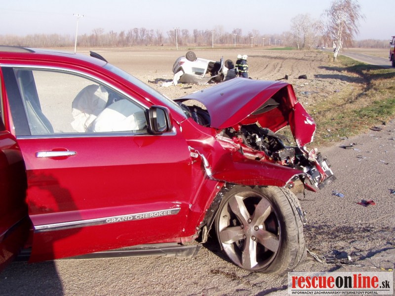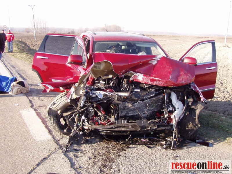 katastri obce Medveďov, okres Dunajská Streda. Na miesto udalosti boli vyslaní traja príslušníci z hasičskej stanice Veľký Meder s technikou AHZS MB VARIO a CAS 32 T815. Po príjazde na miesto udalosti bolo zistené, že sa jedná o dopravnú nehodu dvoch osobných motorových vozidiel značky VW Golf a Jeep Grand Cherokee so siedmymi účastníkmi, z ktorých dve osoby boli zakliesnené v jednom vozidle a päť osôb - ľahko zranených sa nachádzalo mimo vozidiel. Príslušníci HaZZ vyslobodili pomocou hydraulického vyslobodzovacieho zariadenia dve zakliesnené osoby z havarovaných vozidiel, poskytli zraneným osobám predlekársku prvú pomoc, pomohli ich naložiť do vozidiel Zdravotnej záchrannej služby a zabezpečili havarované automobily proti vzniku požiaru. Službukonajúci lekár u jednej z vyslobodených osôb konštatoval exitus, druhá ťažko zranená osoba bola odvezená vrtuľníkom Leteckej záchrannej služby.