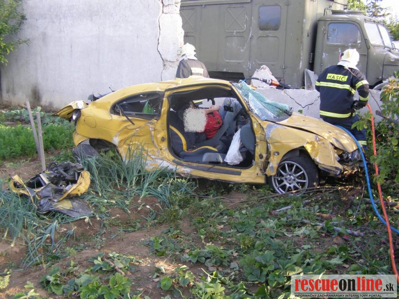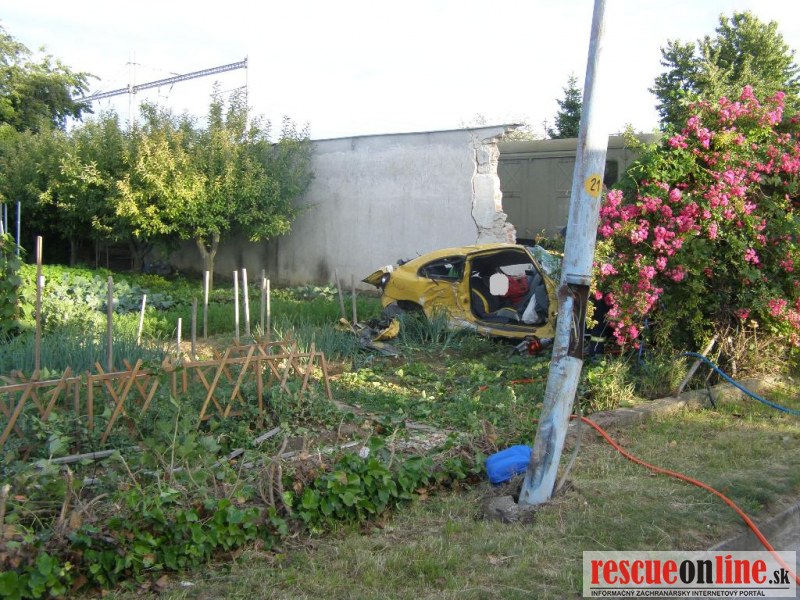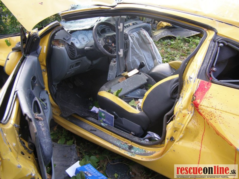 KR HaZZ Trnava |MM| Na operačné stredisko HaZZ v Piešťanoch bola v nedeľu 26. júna 2011 o 19:04 hod. nahlásená dopravná nehoda osobného vozidla s dvomi zakliesnenými osobami vo vozidle na Obchodnej ulici v Piešťanoch Na miesto udalosti boli vyslaní štyria príslušníci HaZZ s technikou AHZS MB Atego. Po príchode na miesto udalosti bola už na mieste nehody ZZS a ošetrovala ťažko zranenú osobu na sedadle spolujazdca. Vo vozidle sa nachádzal zakliesnený vodič vozidla Renault Megane Cupe, u ktorého lekár ZZS konštatoval exitus na mieste nehody. Príslušníci HaZZ pomocou vyslobodzovacieho zariadenia Holmatro vyslobodili spolujazdca z vozidla a pomohli pri naložení do vozidla ZZS. Osoba bola z miesta nehody transportovaná ZZS. Príslušníci HaZZ ďalej za prítomnosti polície vyslobodili z vozidla aj mŕtveho vodiča vozidla. Telo bolo uložené na nosidlá a zakryté plachtou. Jednotka HaZZ ďalej vykonala na vozidle protipožiarne opatrenia a zdokumentovala miesto dopravnej nehody. Dopravu na mieste nehody riadila a zabezpečovala hliadka Mestskej polície Piešťany. Totožnosť 20 ročného vodiča potvrdil polícii otec zosnulého. Po ukončení zásahu sa jednotka o 20:15 hod. vrátila na základňu.