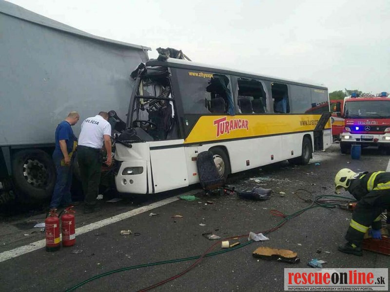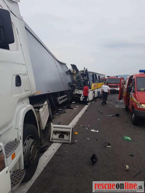 ATE | Dnes neskoro popoludní bol privolaný záchranársky vrtuľník z Banskej Bystrice k hromadnej dopravnej osobe, ktorá sa stala na ceste R1 medzi Banskou Bystricou a Zvolenom. Po zrážke kamióna s autobusom sa na mieste nachádzalo niekoľko zranených cestujúcich, žiaľ, dvaja svojim zraneniam na mieste podľahli. Lekár leteckých záchranárov si do svojej starostlivosti prevzal ťažko zranenú, 41-ročnú ženu, ktorá utrpela poranenia viacerých častí tela. Po ošetrení bola preložená na palubu vrtuľníka a s tzv. polytraumou záchranárskym vrtuľníkom prevezená do Fakultnej nemocnice F. D. Roosevelta v Banskej Bystrici. Ostatní zranení ostali v starostlivosti pozemných záchranárov.