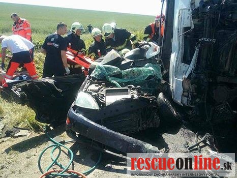 K dopravnej nehode, ktorá sa stala dnes popoludní na križovatke v obci Trenčianska Turná (okres Trenčín) letel záchranársky vrtuľník z trenčianskeho strediska. Po zrážke osobného auta s kamiónom sa na mieste nachádzalo päť zranených účastníkov dopravnej nehody. Po príchode lekára leteckých záchranárov sa už jedna osoba, ktorú z auta vyslobodili hasiči, nachádzala mimo vozidla. Ďalšie tri osoby - žena, muž a dieťa boli z vozidla postupne vyslobodené. Všetci štyria pasažieri utrpeli tak závažné poranenia, ktoré boli nezlučiteľné so životom a ktorým na mieste, žiaľ, všetci štyria podľahli. Vodič kamióna ostal s ľahšími poraneniami v starostlivosti pozemných záchranárov.