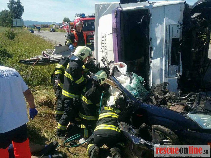 Hasiči z Trenčína dnes zasahovali pri vážnej dopravnej nehode, ktorá sa stala v katastri obce Trenčianska Turná na ceste č. I/9. Pri udalosti sa zrazilo nákladné vozidlo s osobným autom. Hasiči museli z auta vyslobodzovať 4 osoby, z ktorých 3 svojim zraneniam na mieste podlahli. Jednu osobu zdravotníci oživovali. Cesta bola uzavretá v oboch smeroch.
