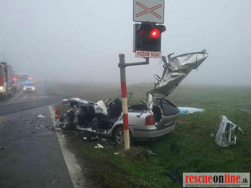 Tragickú zrážku osobného auta a vlaku neprežili 2 osoby