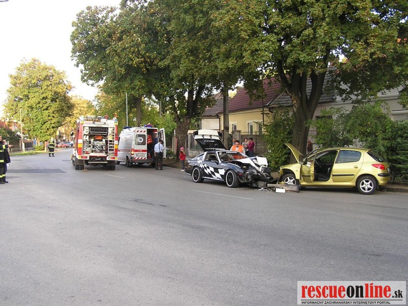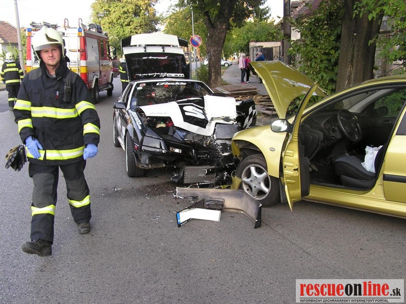 KR HaZZ Trnava |MM| V stredu 5. októbra 2011 o 16:48 hod bola na OR HaZZ v Trnave ohlásená dopravná nehoda dvoch osobných motorových vozidiel na križovatke ulíc Bratislavská a Stromová v Trnave. Zasahovali štyria príslušníci HaZZ z hasičskej stanice v Trnave s technikou MB Vario. Po príjazde na miesto udalosti bolo zistené, že na mieste nehody sa nachádzajú čelne zrazené dve osobné motorové vozidlá Nissan 300 Turbo a Peugeot 206. V dôsledku dopravnej nehody došlo k zraneniu troch osôb, dvoch žien a jedného muža. Účastníci nehody sa nachádzali mimo vozidiel. Súčasne s jednotkou HaZZ sa na miesto udalosti dostavila ZZS. Príslušníci HaZZ asistovali posádke ZZS a pomohli pri naložení zranených osôb do vozidla ZZS. Zranené osoby boli odvezené na ďalšie vyšetrenie do FN Trnava. Uniknuté prevádzkové kvapaliny v množstve približne 4 litre boli zasypané sorbentom Vapex. Ďalej príslušníci zabezpečili vozidlá proti požiaru odpojením akumulátorových batérii a ďalšiemu uniku prevádzkových kvapalín. Po príchode odťahovej služby príslušníci asistovali pri odstránení havarovaných vozidiel z cestnej komunikácie a naložení na vozidlo odťahovej služby. Následne bola cestná komunikácia dočistená. Po ukončení zásahu o 18:39 hod. sa jednotka HaZZ vrátila na základňu.