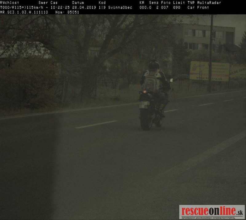 KRPZ Trenčín |MM| Policajti Okresného dopravného inšpektorátu z Trenčína namerali cestným radarom v obci Svinná, okr. Trenčín vodiča motocyklu zn. Yamaha 650, ktorý prekročil maximálnu povolenú rýchlosť v obci o 65 km/hod.