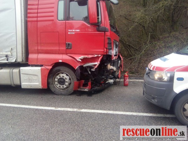 MVSR |MM| Dňa 18. februára 2016 pred obedom bola ohlásená dopravná nehoda osobného motorového vozidla Volkswagen Golf a nákladného vozidla MAN TGA s návesom na št. ceste I/51 v katastri obce Trstín, okres Trnava. V dôsledku dopravnej nehody došlo k zraneniu jednej osoby. Zasahujúci príslušníci Okresného riaditeľstva Hasičského a záchranného zboru v Trnave vyslobodili zakliesnenú osobu z vozidla pomocou hydraulického vyslobodzovacieho zariadenia. Zranená osoba bola odvezená vrtuľníkovou záchrannou službou do nemocnice. Havarované automobily zabezpečili proti vzniku požiaru