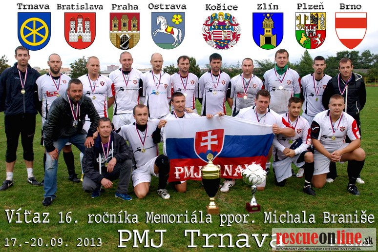 KRPZ Trnava |MM| Policajti trnavskej pohotovostnej motorizovanej jednotky (PMJ) sa v dňoch 18. – 20. septembra zúčastnili futbalového turnaja v Prahe. Na 16. ročníku „Memoriálu ppor. Michala Braniše“ sa tešili z celkového triumfu. Turnaj bol venovaný spomienke na ich kolegu, ktorý podľahol následkom zranenia, spôsobeného pri služobnom zákroku zo dňa 15. júla 1997.