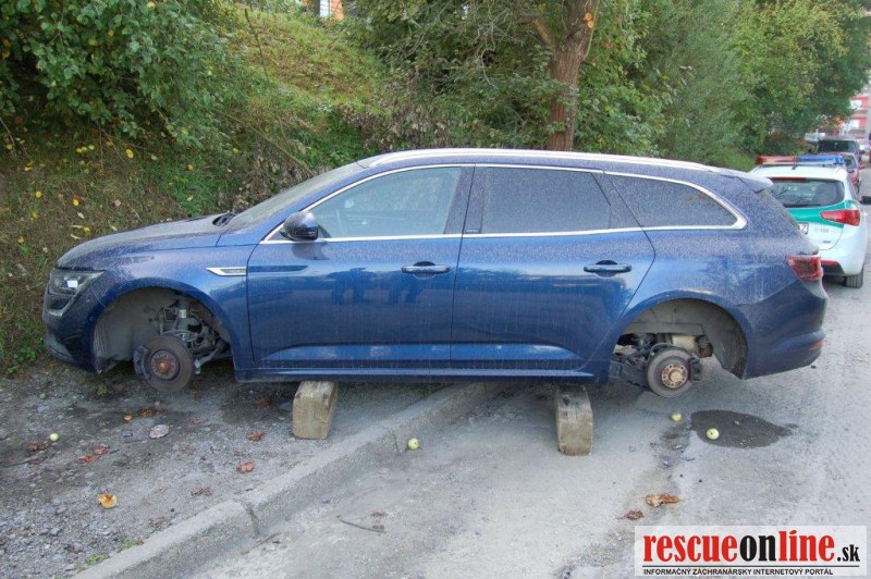 V inom zložení mali 28 a 29 roční Kysučania v prvej polovici septembra odcudziť z auta Renault Talisman, ktoré bolo zaparkované na ulici Jašíkovej, 4 ks hliníkových diskov s pneumatikami. Majiteľovi mali spôsobiť škodu vo výške asi 2.500,-€. Pred hotelom v obci Povina mali z auta Mercedes zdemontovať 4 hliníkové disky s pneumatikami v hodnote asi 13.000,- €.Poškodením auta mali majiteľovi spôsobiť škodu vo výške asi 2.650,-€ Následne sa mali vlámať do vedľa zaparkovaného auta Peugeot Partner. Z batožinového priestoru auta mali odcudziť čierny zdvihák a sadu gola kľúčov. Krádežou a poškodením auta mali majiteľovi spôsobiť škodu vo výške asi 240,-€.