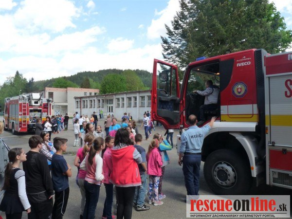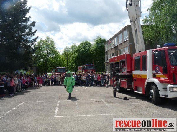 Hasiči školákom ukázali vecné prostriedky a výbavu vozidiel AHZS MB Vario, AHZS Iveco Multistar a CAS 30 Iveco Trakker spojené s predvedením hasenia pomocou vysokotlakovej prúdnice, použitia automómneho dýchacieho prístroja, špeciálnych ochranných odevov, osvetľovacieho stožiaru či hydraulického vyslobodzovacieho zariadenia.