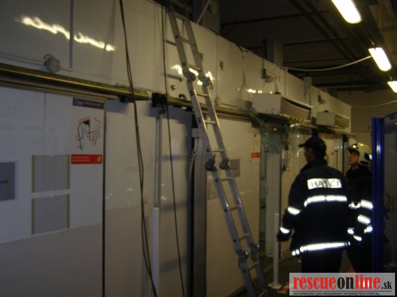 KR HaZZ Trnava |MM| Na linku tiesňového volania bol v stredu 10. augusta 2011 o 17:47 hod. ohlásený hláskou EPS poplach v hypermarkete Tesco na Veternej ul. v Trnave, okres Trnava. V tom istom čase bol prijatý hovor na linku 112 a nahlásený únik CO2. Na miesto udalosti boli z hasičskej stanice v Trnavevyslaní štyria príslušníci HaZZ s technikou MB Atego. Príslušníci po príchode na miesto udalosti zahájili prieskum, zdroj únikunebezpečných látok v ovzduší vykonali pomocou analyzátora plynov, uskutočnili prehliadku vnútorných priestorov hypermarketu, pričomboli nájdené a evakuované tri osoby mimo približne 300 osôb evakuovaných pomocou rozhlasu. Únik CO2 bol potvrdený z chladiarenského zariadeniaa v súčinnosti so zamestnancami Tesca zastavený. Veliteľ zásahu si vyžiadal výpomoc štyroch príslušníkov, ktorí po príchode na miesto udalosti vykonali prehľadávanie všetkých priestorov Tesca a galérie. Vyvetranie vnútorných priestorov Tesca bolo zabezpečené pretlakovým ventilátorom.