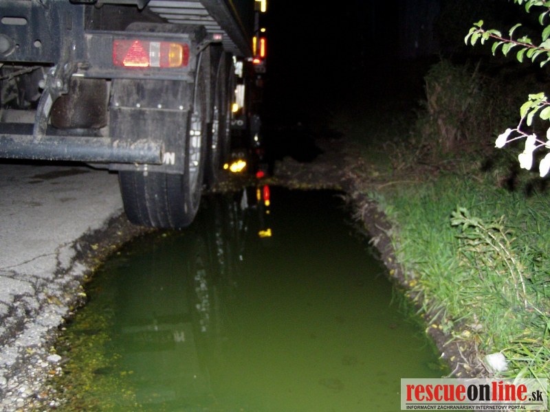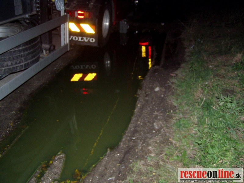 Únik nafty z nádrže nákladného vozidla vo Veľkom Mederi