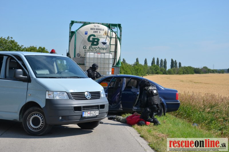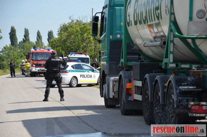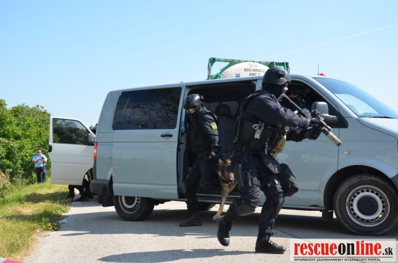 Sládkovičovo | Včera zložky integrovaného záchranného systému v taktickom cvičení simulovali únik neznámych látoch z kamióna, ktorý mal byť odcudzený páchateľmi zadržanými políciou. Páchatelia mali hliadku PZ ohrozovať ručným granátom a streľnými zbraňami, na čo bola povolaná zásahová jednotka PPÚ, ktorej policajti páchateľov zneškodnili a zadržali.