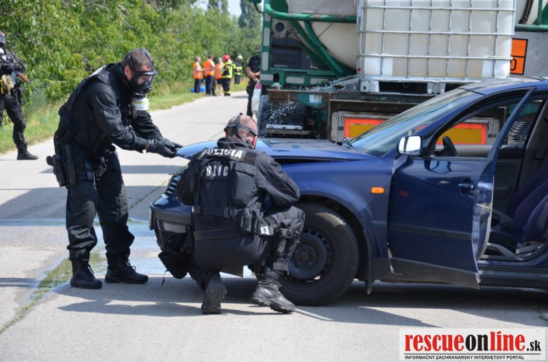 Aby cvičenie bolo čo najrealistickejšie, páchatelia mali nárazom unikajúceho auta spôsobiť únik neznámej kvapaliny z cisterny, na čo museli byť povolané jednotky HaZZ z okresov Galanta, Dunajská Streda, Trnava, Hlohovec a Piešťany. Na cvičení zasahovali aj hasiči HaZZ zo Serede.