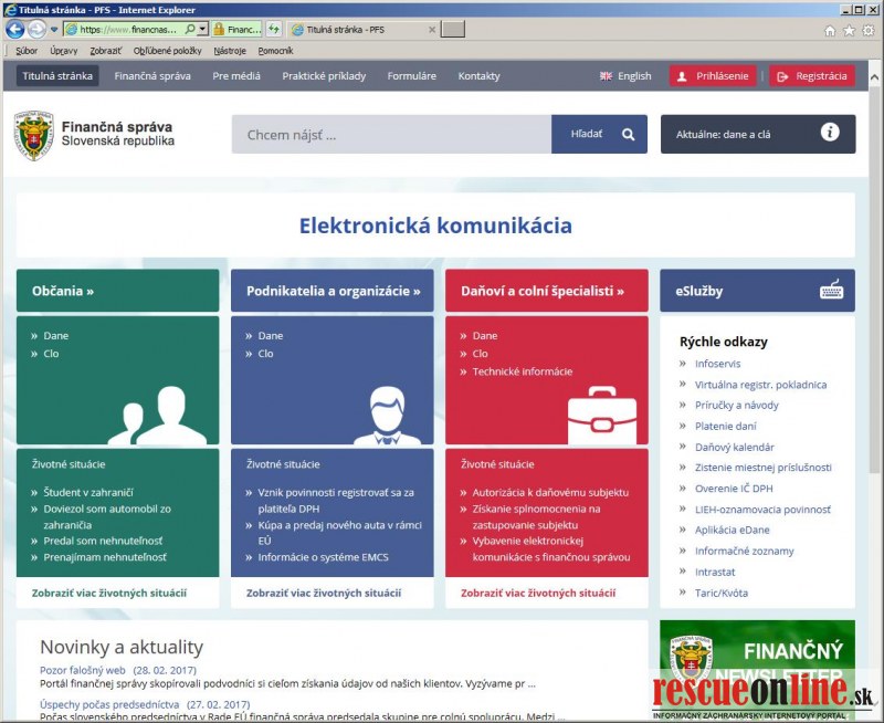 Finančná správa SR |MM| Portál finančnej správy skopírovali pravdepodobne podvodníci s cieľom šírenia malvéru do počítačov našich klientov. V prípade stiahnutia škodlivý softvér zablokuje dokumenty v počítači a za ich opätovné sprístupnenie žiada zaplatiť v tomto prípade cca 900 eur. Podobný útok sa môže kedykoľvek opakovať.