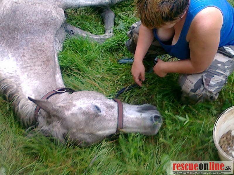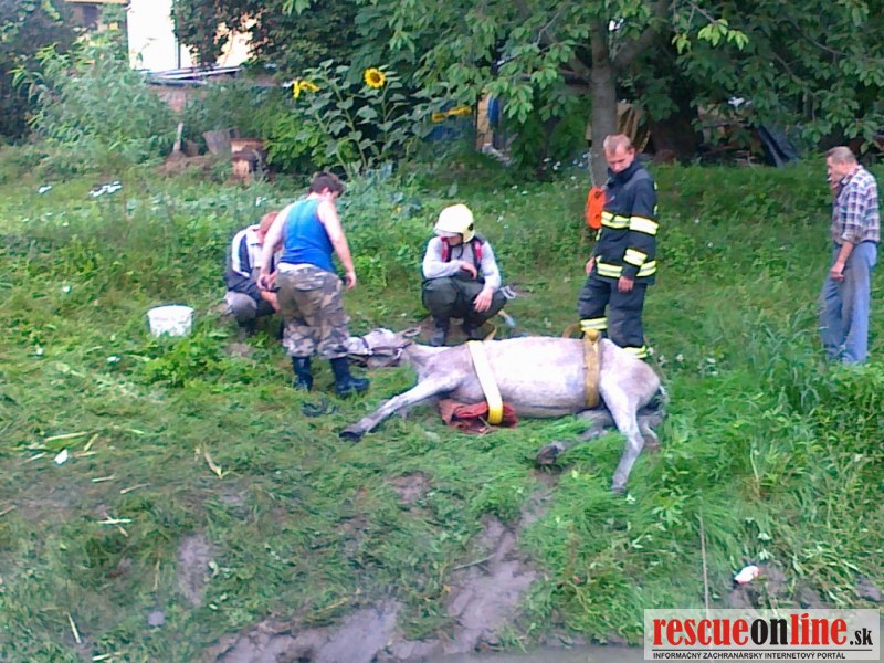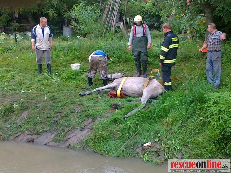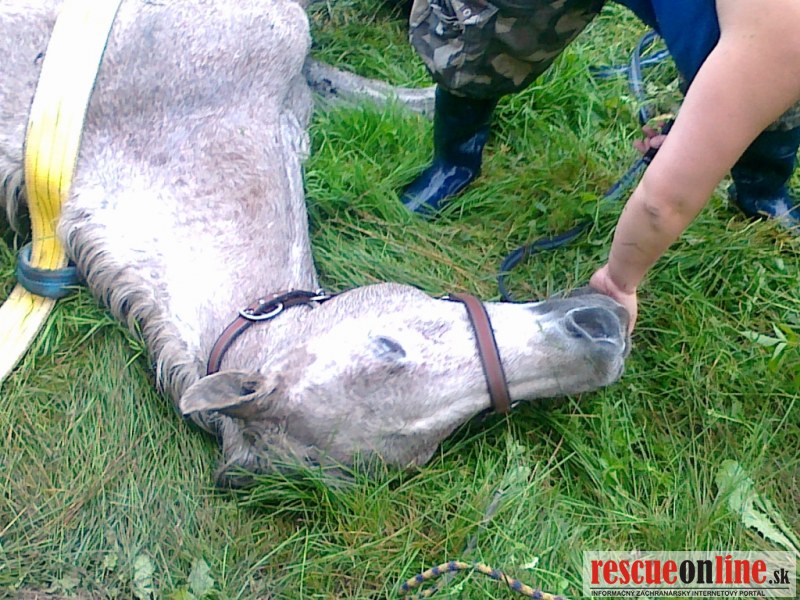 KR HaZZ Trnava |MM| Na operačné stredisko OR HaZZ v Trnave bol vo štvrtok 4. augusta 2011 o 08:15 hod. nahlásený uviaznutý kôň v potoku v obci Slovenska Nová Ves. Na miesto udalosti bola vyslaná hasičská jednotka, štyria príslušníci HaZZ s technikou MB Atego. Po príjazde na miesto udalosti bolo zistené, že vysilené zviera je uviaznuté v bahnitom potoku. Na mieste sa nachádzala užívateľka zvieraťa. Príslušníci HaZZ koňa vytiahli pomocou navijaka a na miesto bol privolaný veterinár. Po príchode veterinára bol kôň odtiahnutý ďalej na rovnú plochu, kde ho veterinár prezrel. Na mieste udalosti ostala užívateľka zvieraťa a veterinár. Jednotka sa po ukončení zásahu vrátila na základňu o 10:18 hod.