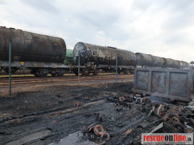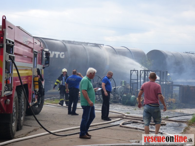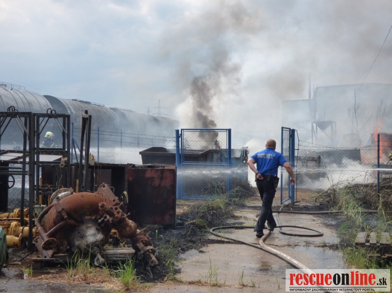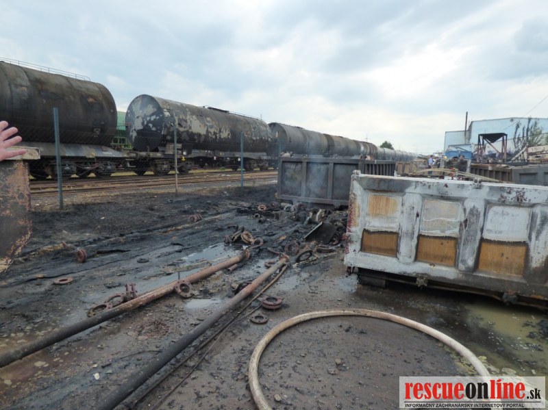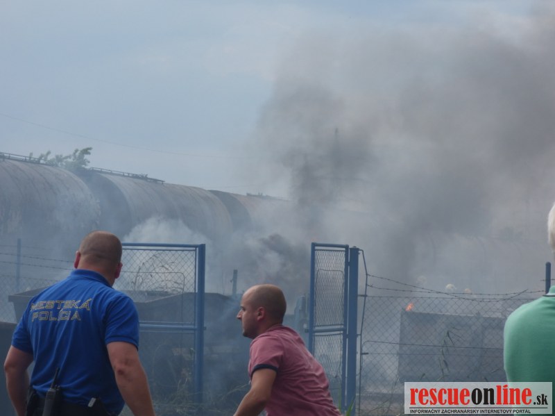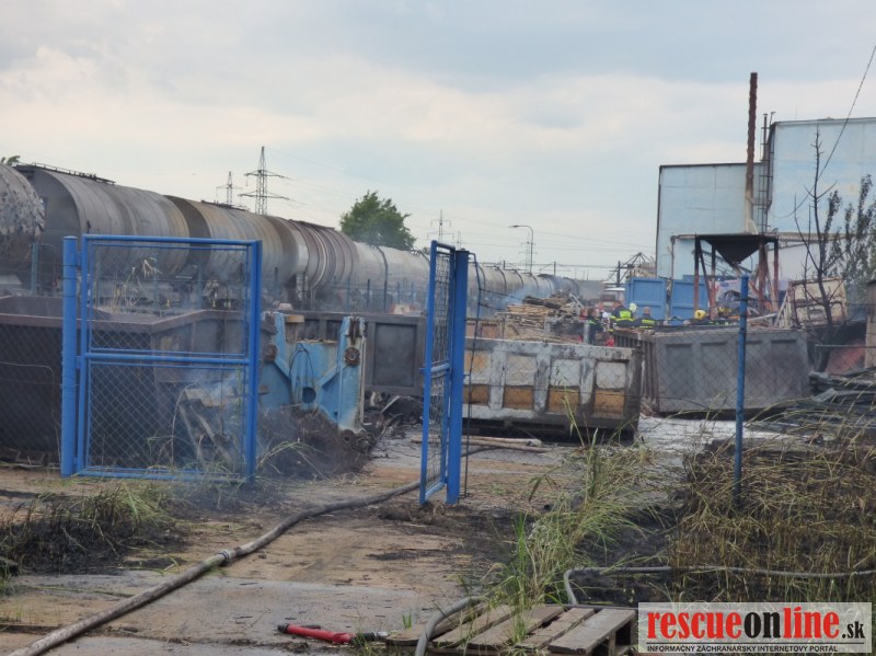 Príčinou dymu bol rozsiahly požiar kontajnerov s odpadom z jednej prevádzky nachádzajúcej sa v areáli. Už pri hasení požiaru bolo zrejmé, že iba neďaleko od požiaru stojace cisternové vozne zoradené v súprave, môžu byť problémom. Hasiči ich ochladzovali prúdom vody.